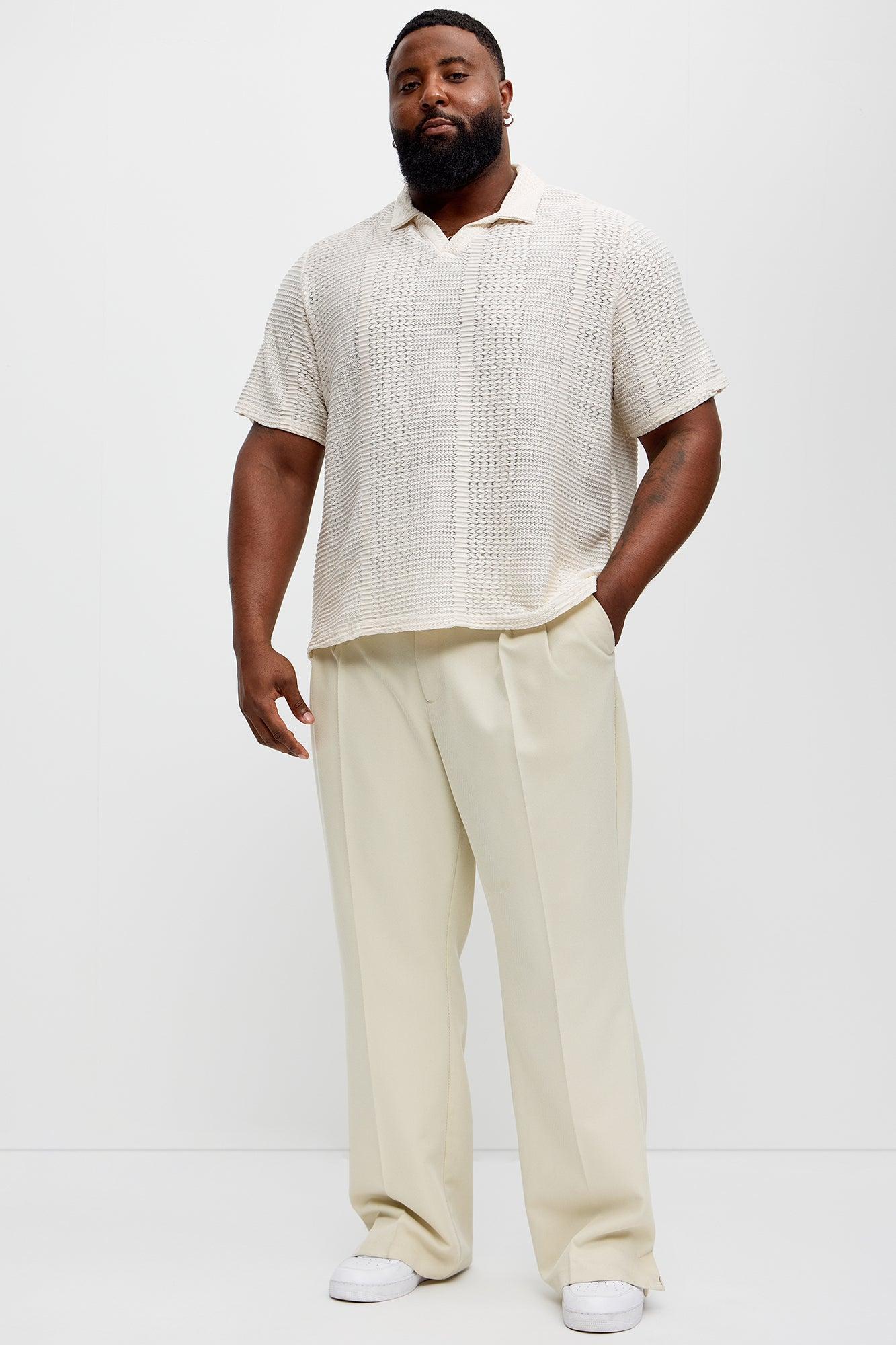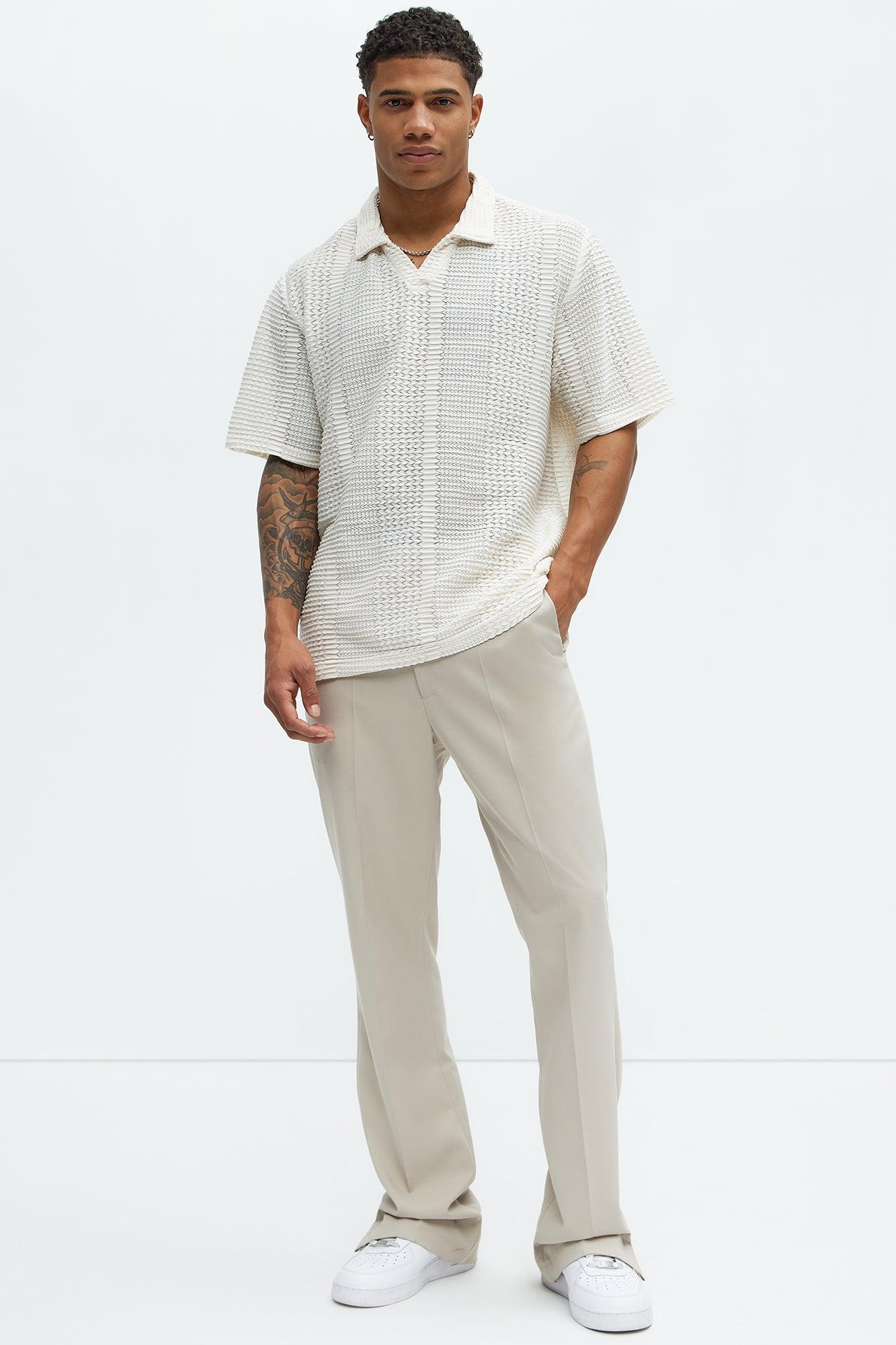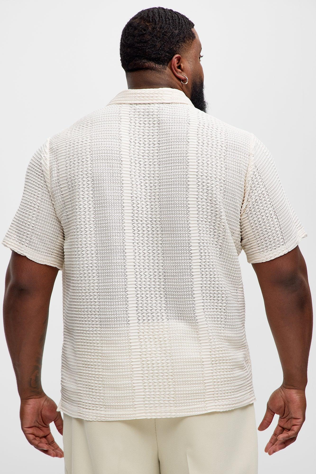 Clay Wavy Open Knit Johnny Collar Shirt - Off White