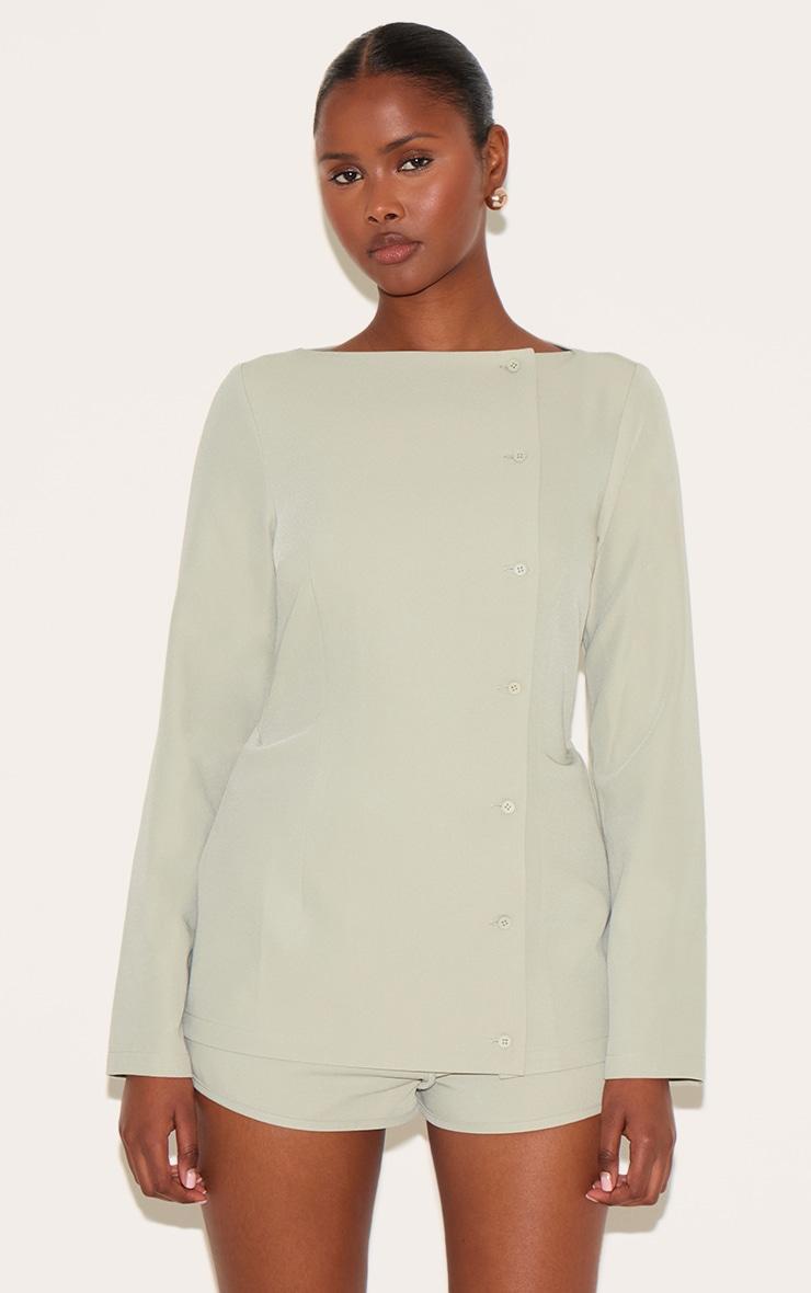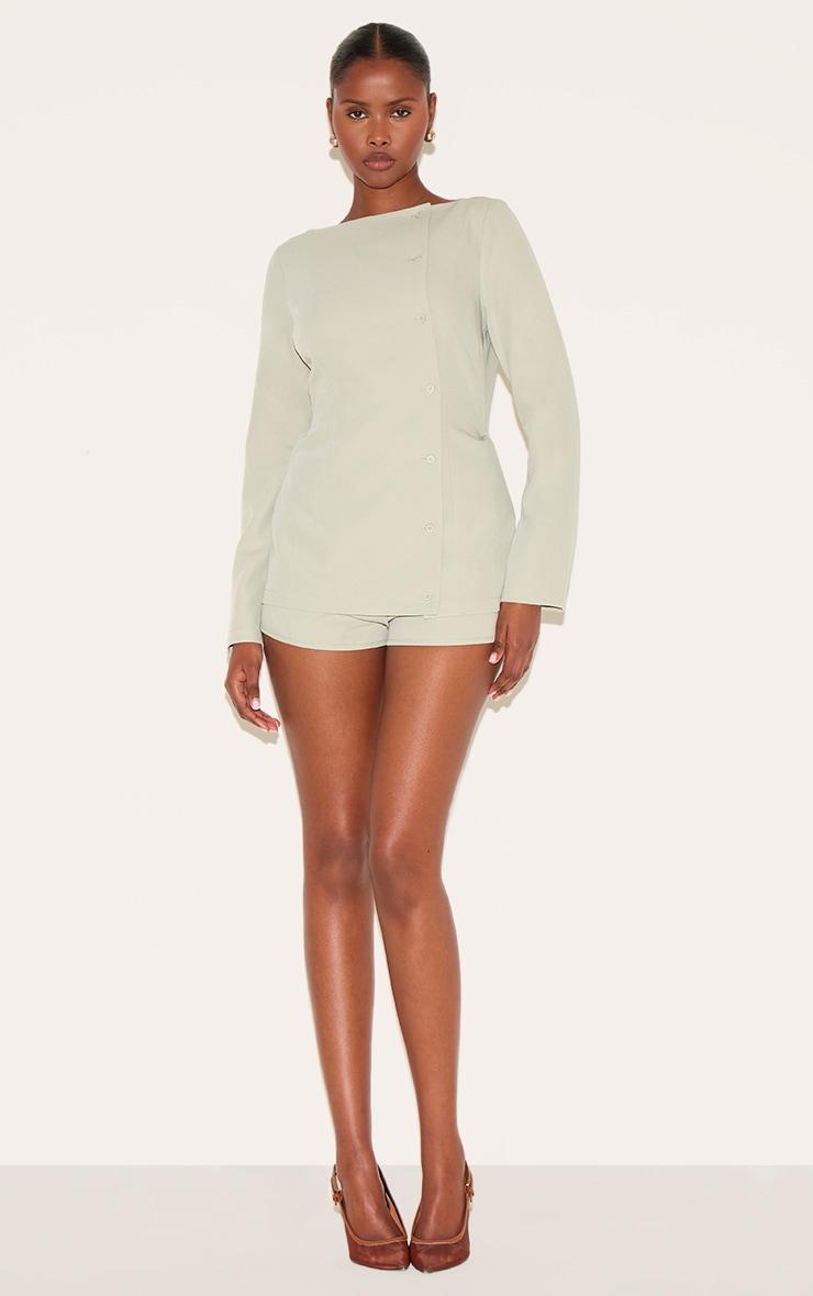 Switch it up with the clay woven asymmetric button tailored skort romper. Crafted from a clay woven material, featuring an asymmetric button front and tailored skort detailing. Team with gold accessories and heels for a refined look.Length approx 81.5cm/32inch (Based on sample size US 4)Model wears size UK 8/ EU 36/ AUS 8/ US 4Model Height - 5ft 9inchp]:!mb-4inch>Brand: PrettyLittleThingCategory: Jumpsuits & PlaysuitsProduct type: Skort PlaysuitColor: ClayMaterial: Tailored WovenNeckline: CrewSleeves: LongOccasion: Evening