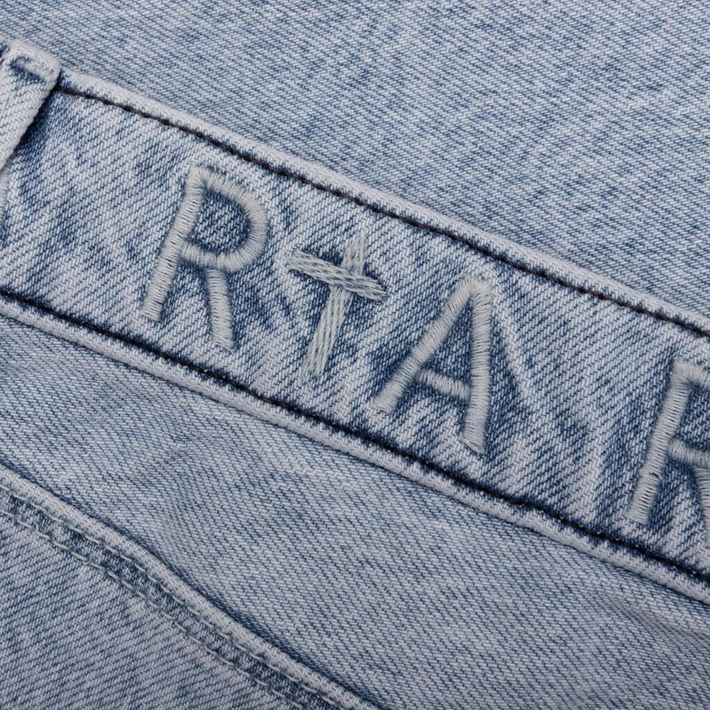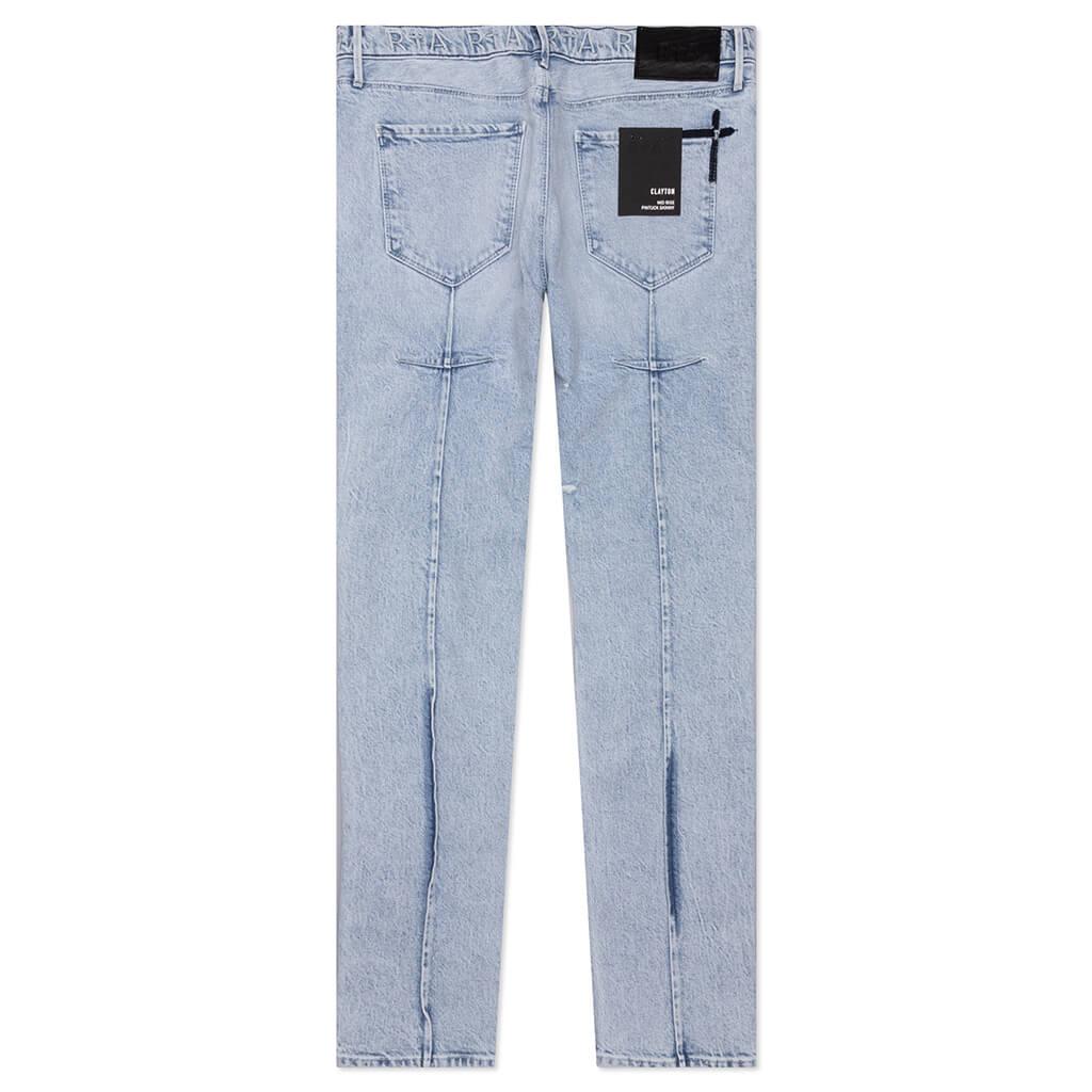 The RtA Clayton Jeans elevate any everyday apparel collection. Cut from cotton and spandex, the silhouette is made for a skinny fit. The 5-pocket design includes an embroidered contracting RtA logo at the front with a signature pintuck dagger seaming residing at the back legs. The all-over distressing and white paint splatter finishes the look. Cotton/spandex blend Skinny fit Zip/button fly 5-pocket design Distressing Splatter paint detailing Embroidered branding Style No: MH22D2-B1182VNTI
