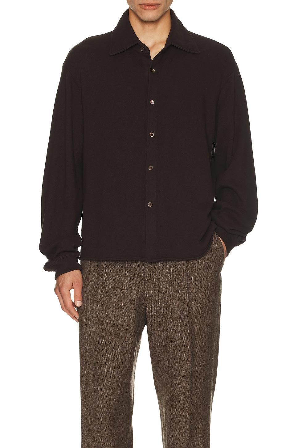 long sleeve55% rayon, 45% viscose / Made in China / Dry clean / Front button closure with spread collar / Chest slip pocket / Satin fabric with contrast embroidered trim and button cuffs / Our Style No. HIFF-MS83 / Manufacturer Style No. HTG240330 / Model is wearing size M.