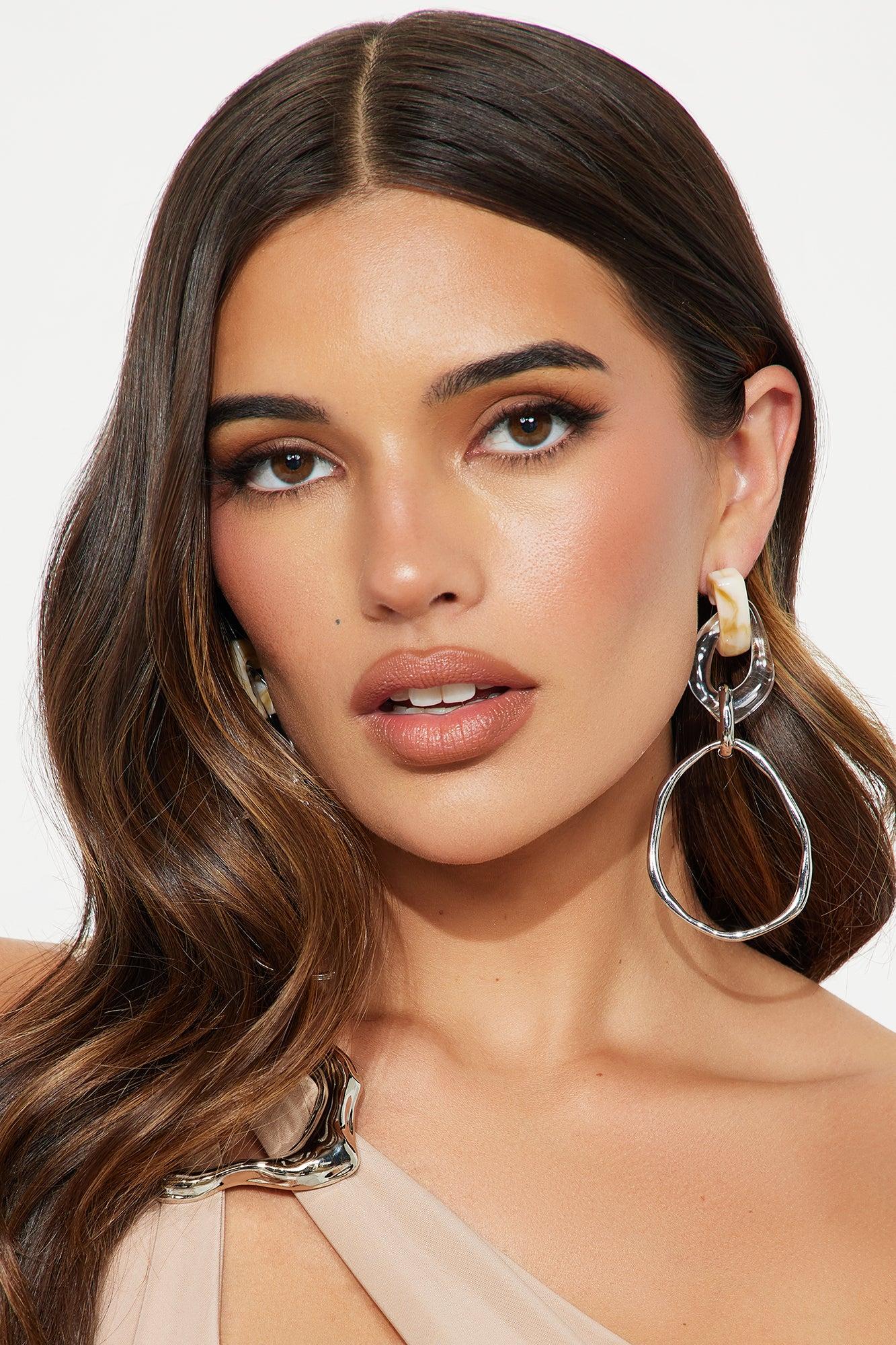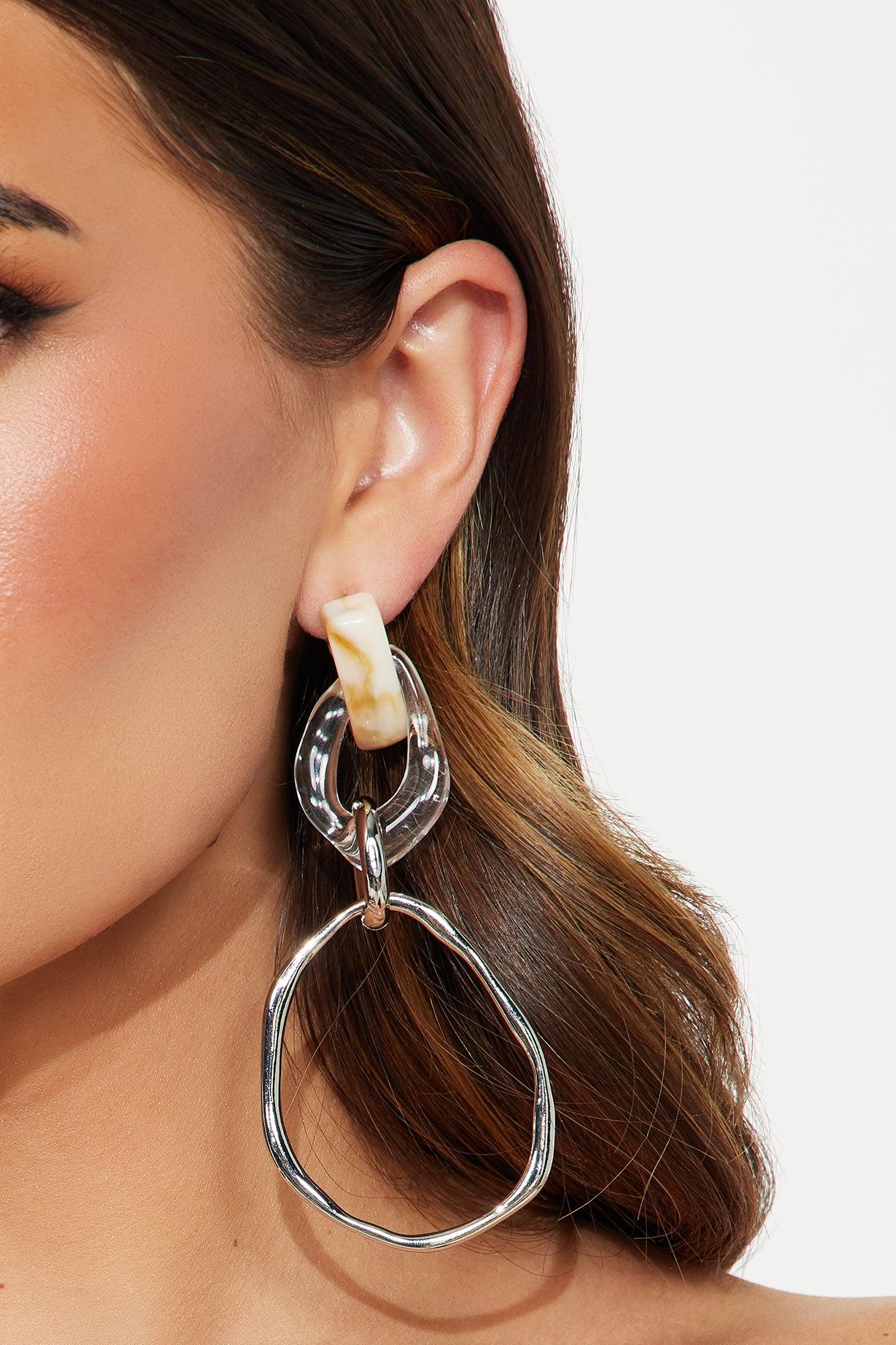 Available In Silver. Drop Earrings Marble Detail Clear Detail Hardware Detail Post Back Closure Final Sale Imported California Proposition 65 WARNING: Cancer and Reproductive Harm - www.P65Warnings.ca.gov.