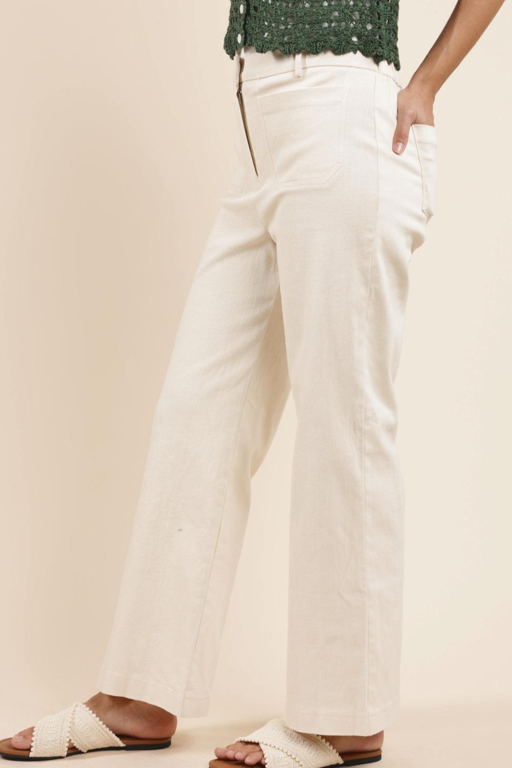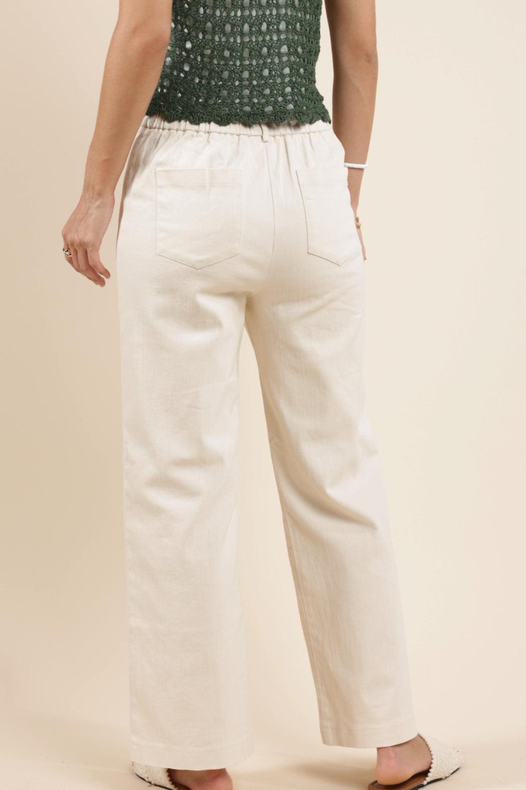 CLEAR EYES DENIM PANTS WITH PATCH POCKETS AND ELASTIC BACK WAIST
