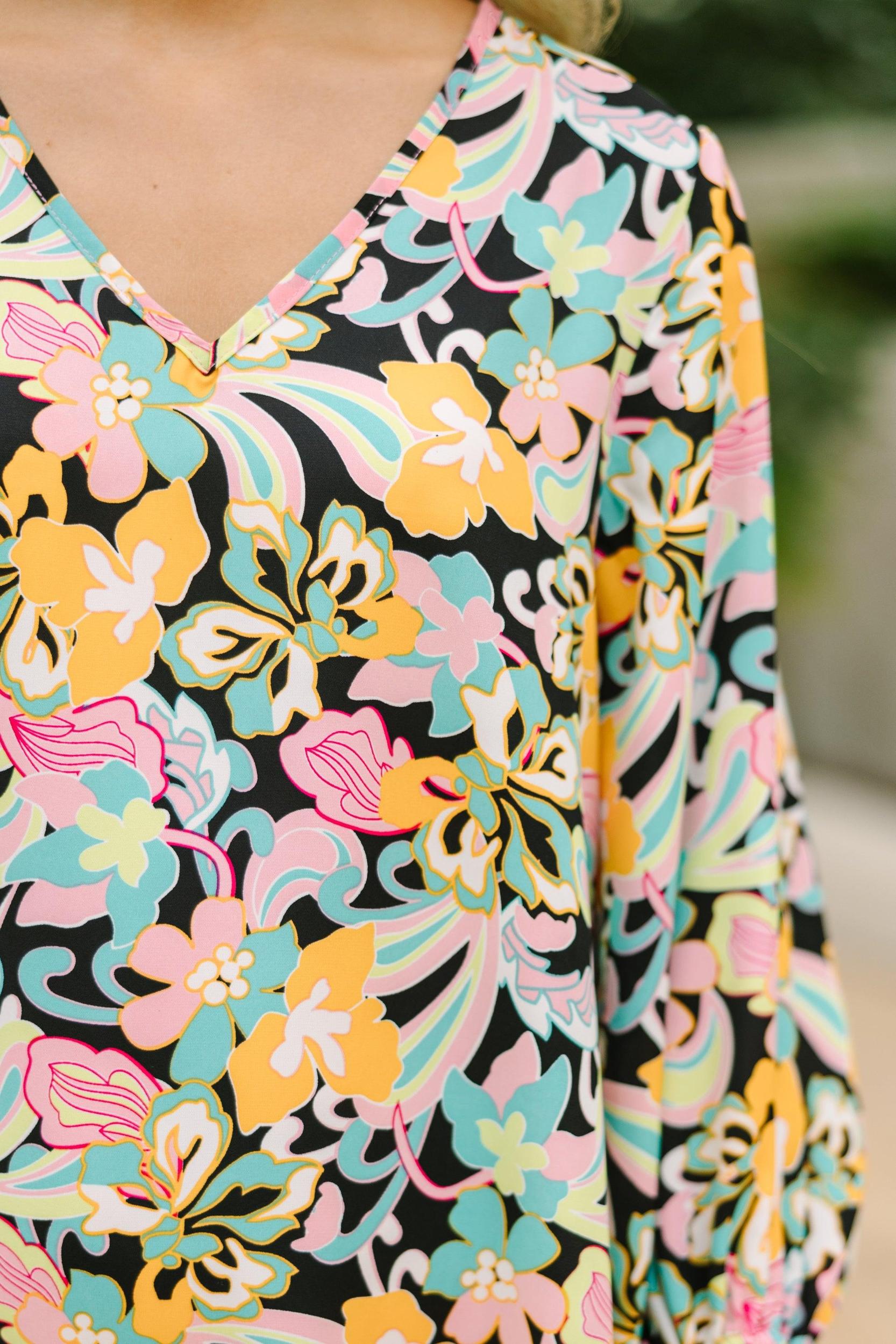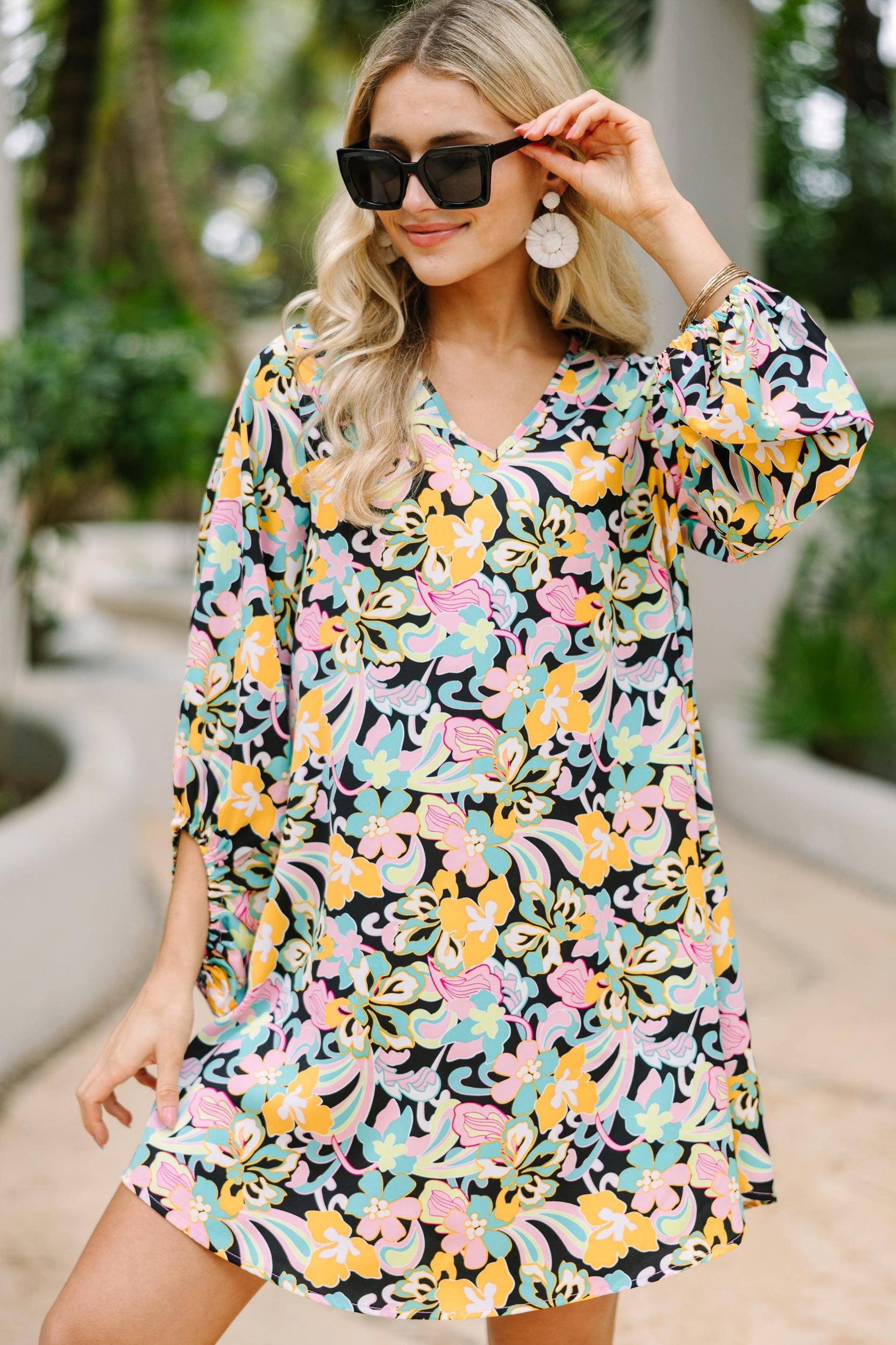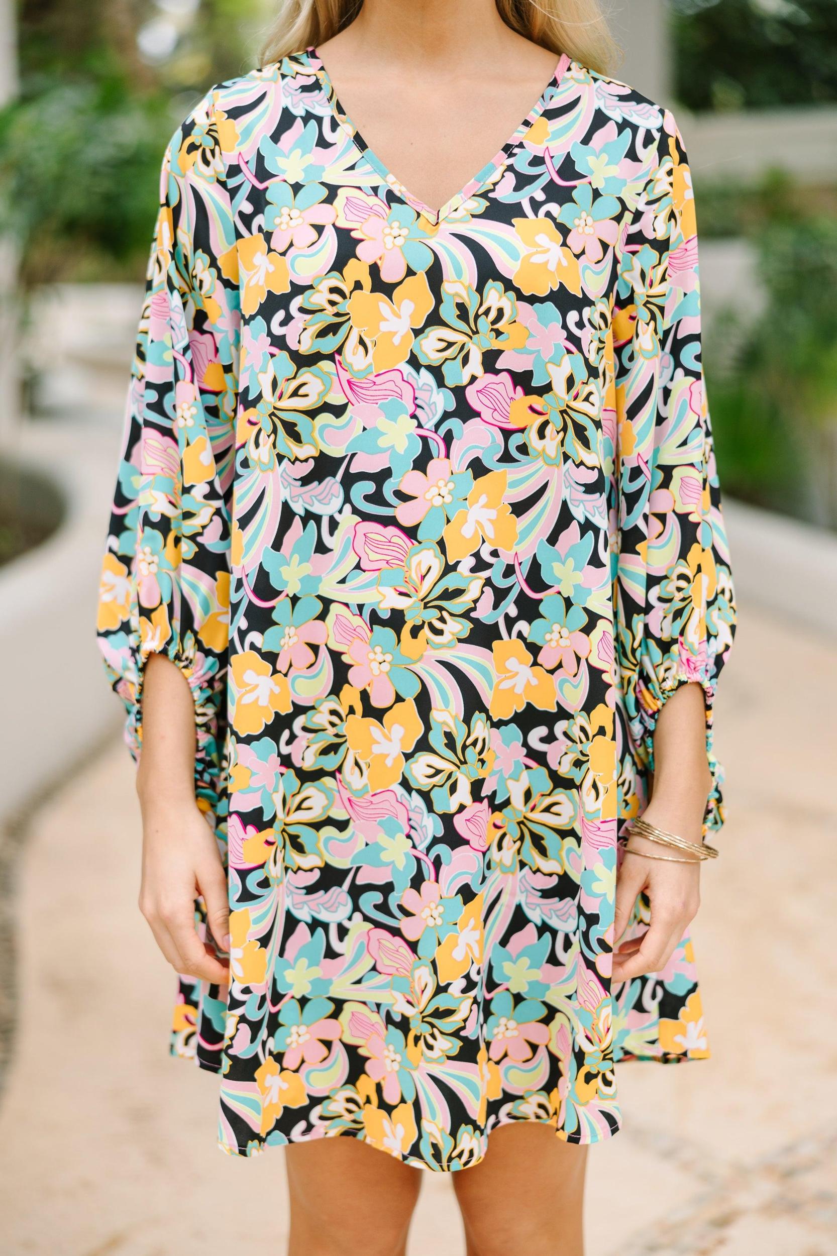 The love you are going to have for this dress is clear! It's so much fun with that colorful and bold print! The fit of this dress is really nice and comfy too. This dress is perfect for casual date nights or any spring brunch! V-neckline Long bubble sleeves Pop art floral print No stretch Poppy is wearing the small.