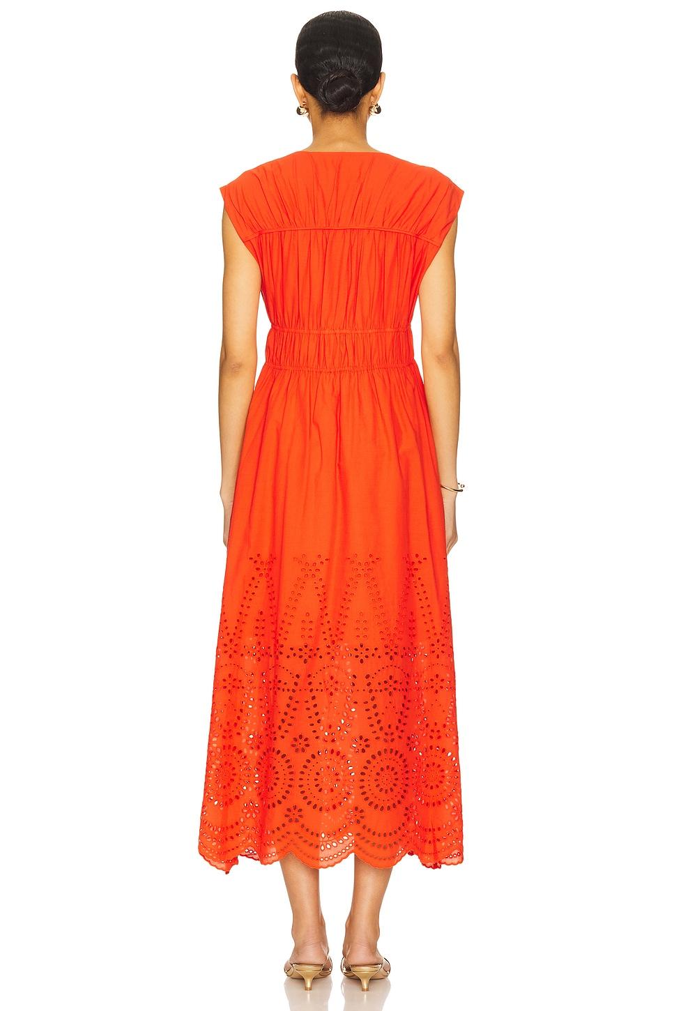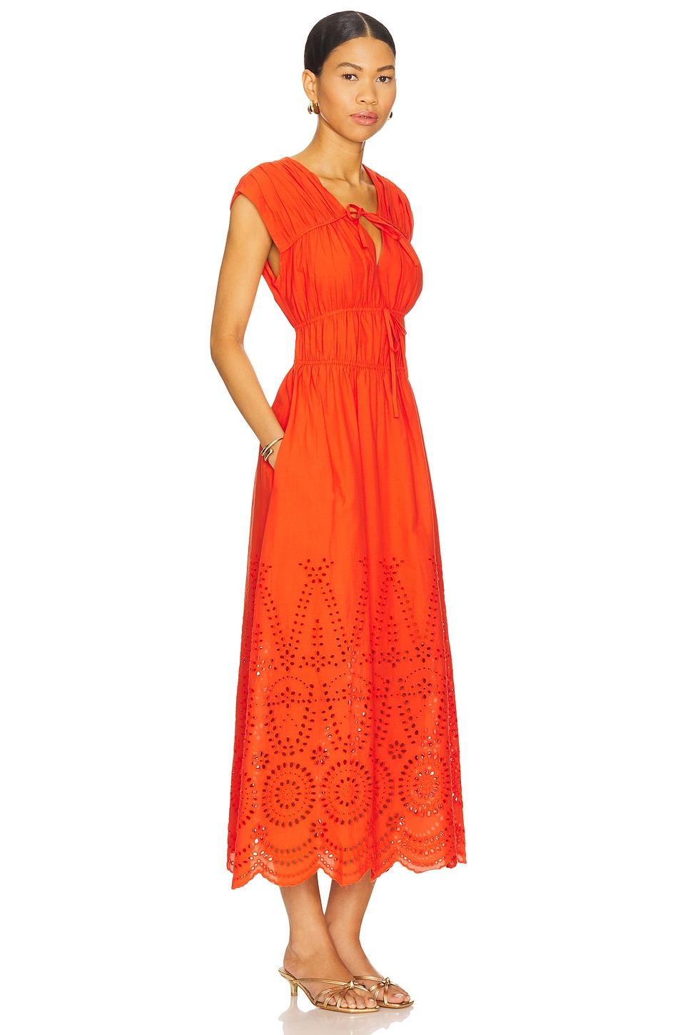 Self: 100% cottonLining: 100% polyester. Dry clean only. Fully lined. Pull-on styling with front tie closure. Side pockets. Midweight linen fabric with eyelet trim at hem. Made in China. Revolve Style No. SMAD-WD299. Manufacturer Style No. XP208876.