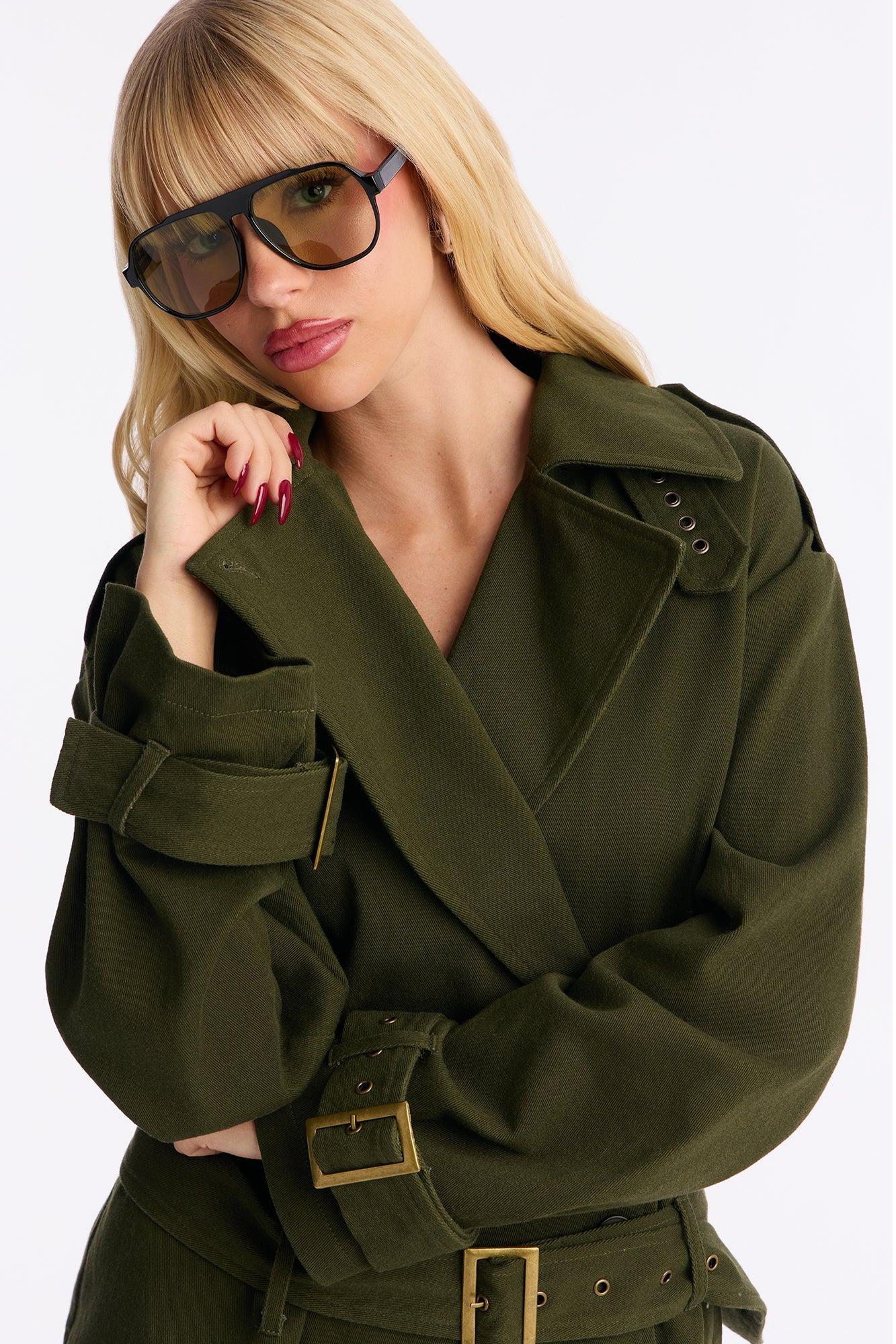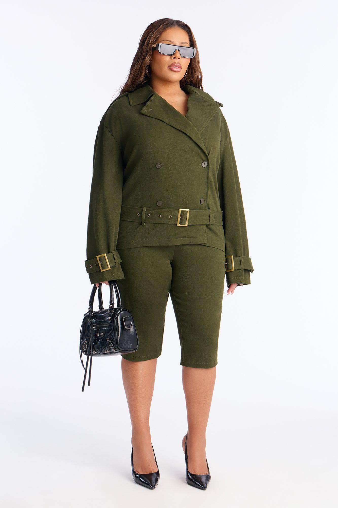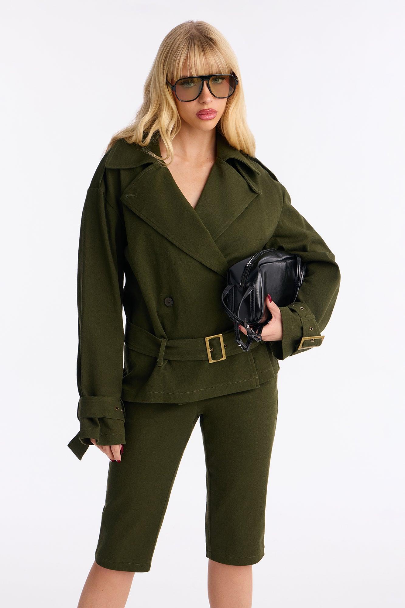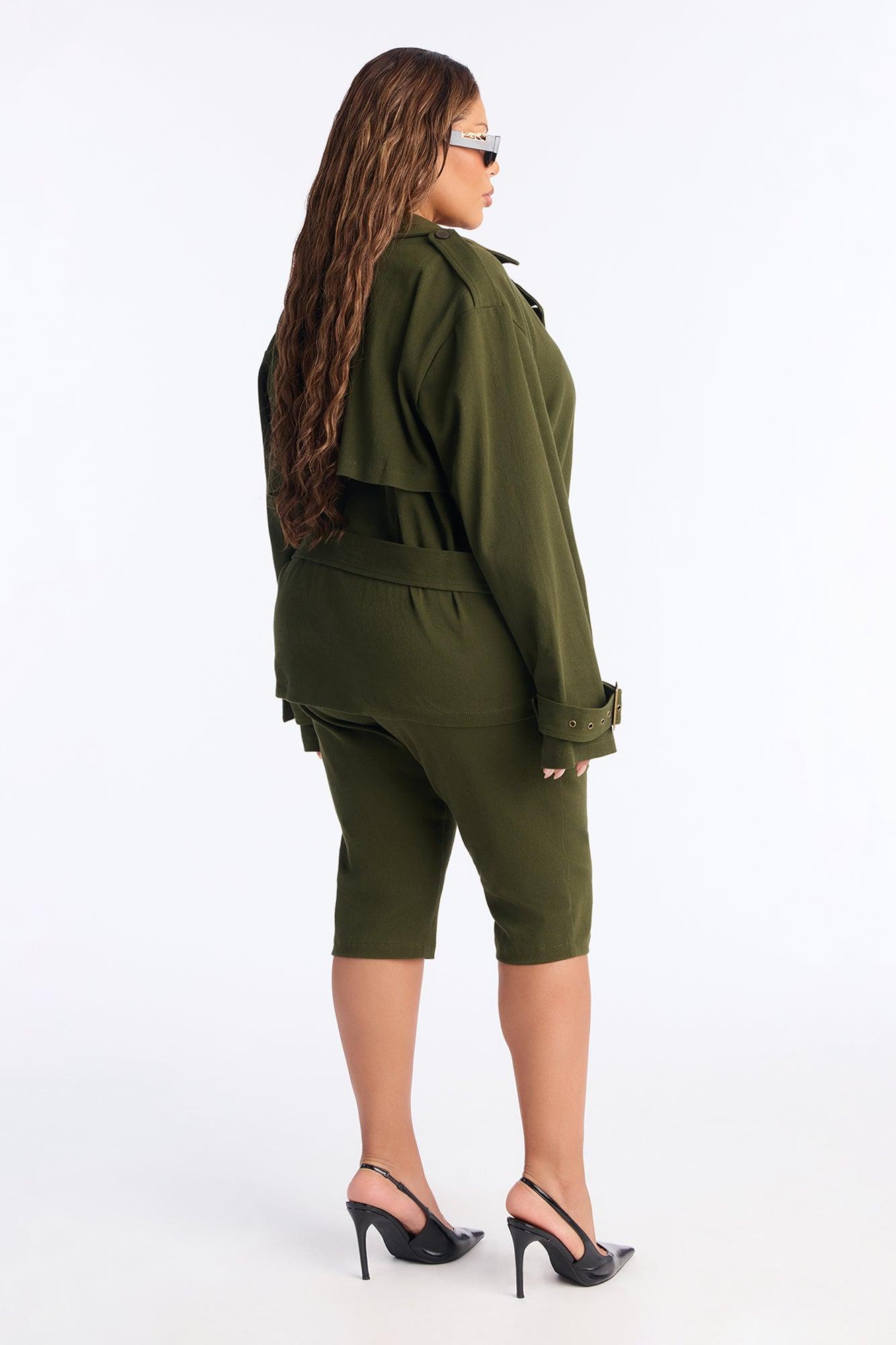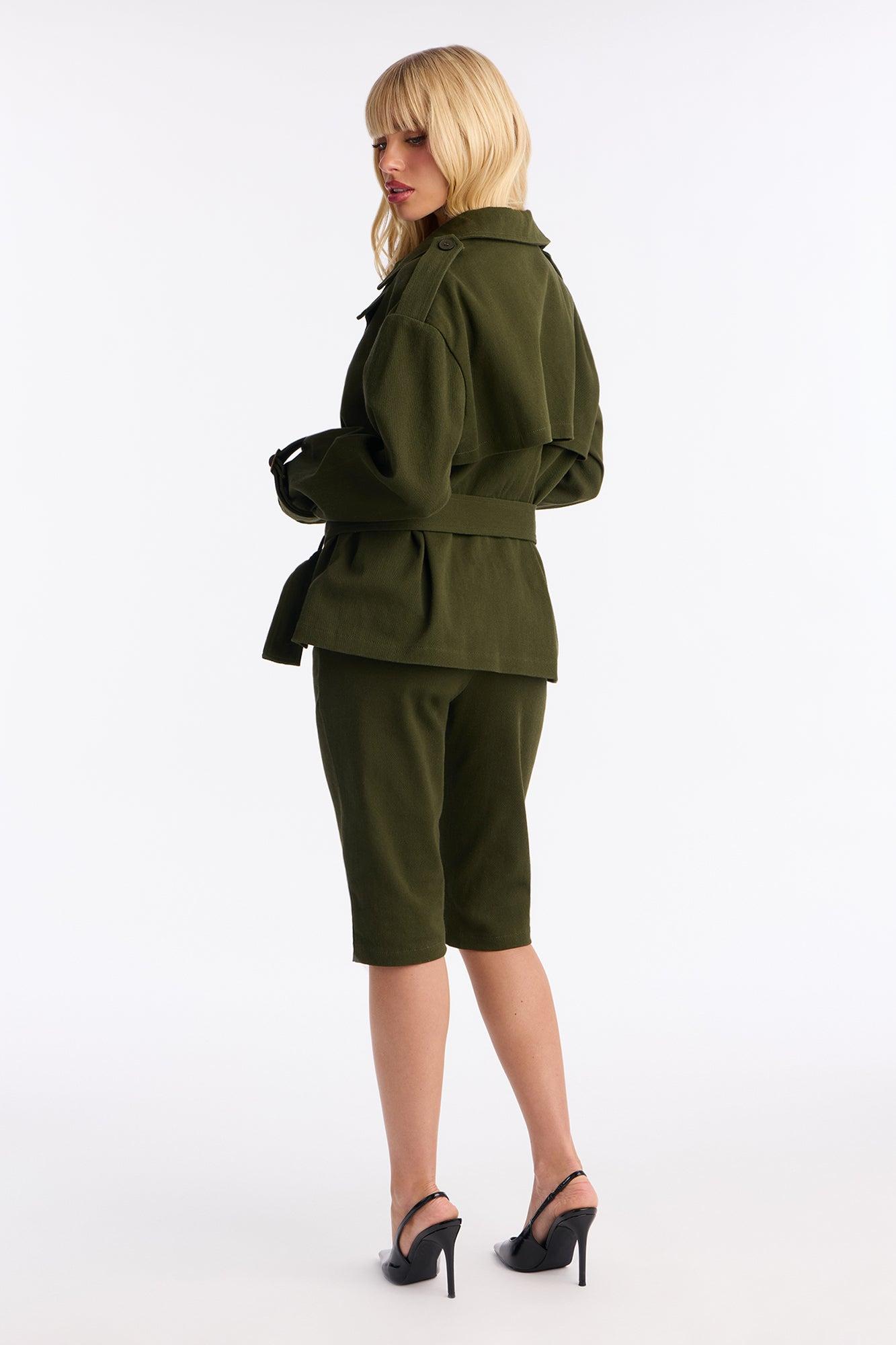 Clementine Twill Trench Jacket Capri Set - Olive Female