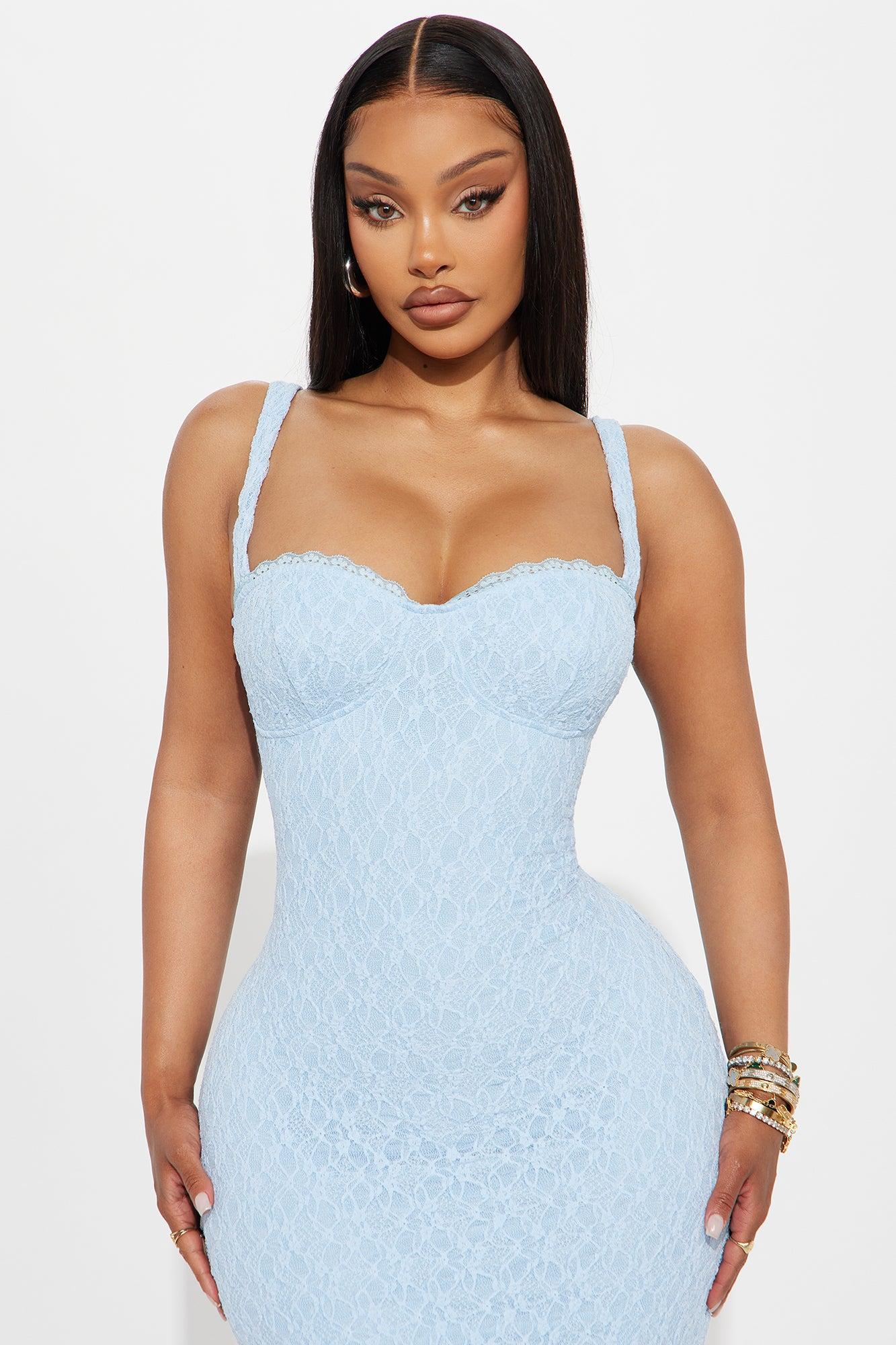 Available In Chocolate, Light Blue, And Red. Lace Maxi Dress Sweetheart Neckline Adjustable Spaghetti Straps Bra Cup Lace Trim Lined Stretch Self: 90%Nylon 10%Spandex Lining: 95%Polyester 5%Spandex Imported California Proposition 65WARNING: Cancer and Reproductive Harm - www.P65Warnings.ca.gov.