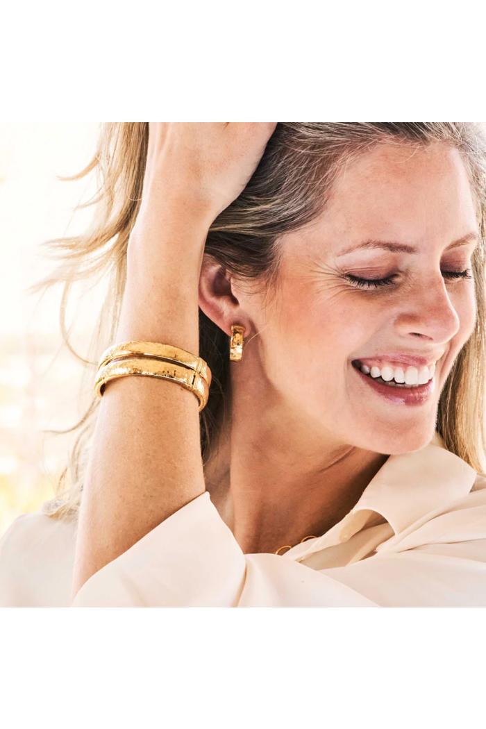 Classic gold hoops are given a bold update with a hammered gold finish that shimmers in the light to make a subtle statement. Unfailingly versatile, powerful and beautiful—wear this set and reign triumphant over the day and night.