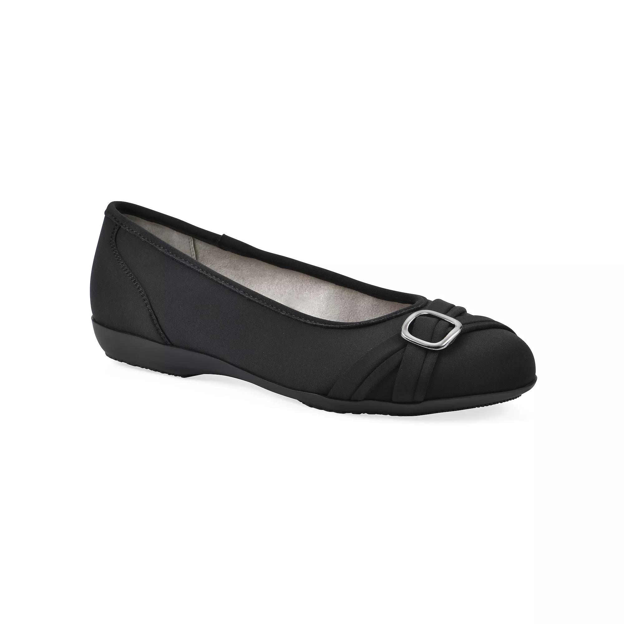 The Calming ballet flat from Cliffs by White Mountain Shoes is effortless elegance with a touch of sophistication. The crisscross design with metal bit elevates this classic style. The sleek and streamlined silhouette of the Calming offers both comfort and style in equal measure. Click this FOOTWEAR GUIDE to find the perfect fit and more! - https://www.kohls.com/feature/shoesizeguide.jsp. DETAILS: Polyurethane upper, Synthetic lining, Man made outsole, Round toe, Slip-on, Foam footbed, Treaded outsole, 0.75" heel height, Spot clean, Imported. Size: 7 Wide. Color: Black Nylon. Gender: female. Age Group: adult.