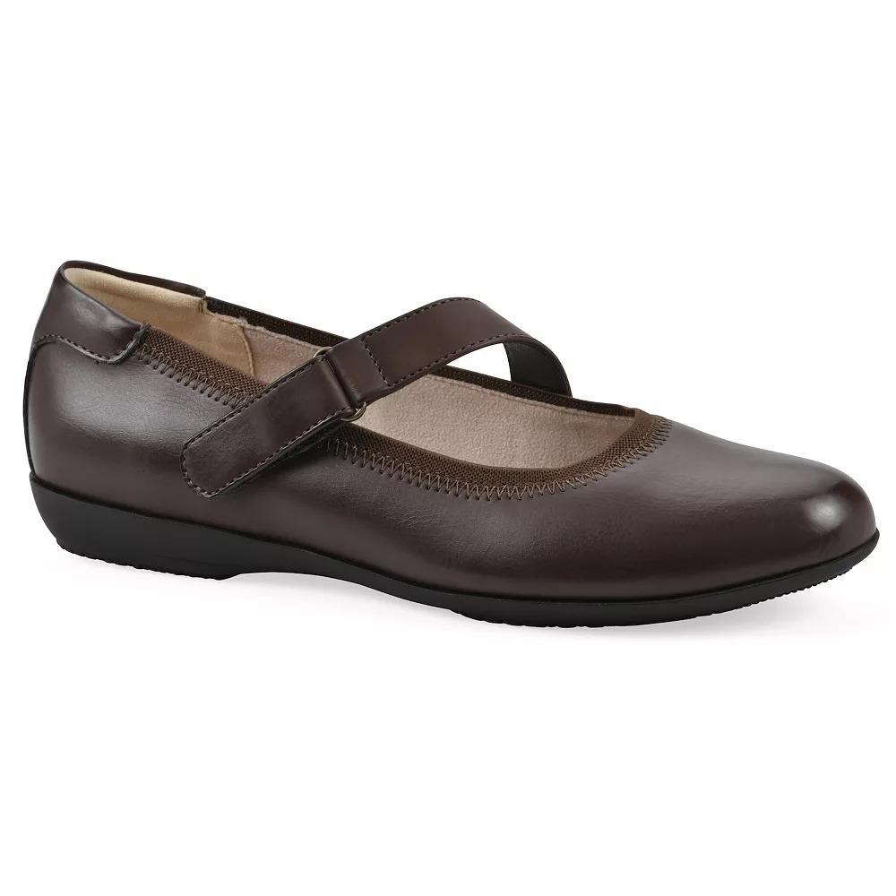 Discover the perfect blend of style and comfort with Cliffs by White Mountain. With a chic diagonal strap, these low-heeled ballet flats effortlessly elevate your everyday outfits, making them a delightful addition to your wardrobe. Click this FOOTWEAR GUIDE to find the perfect fit and more! - https://www.kohls.com/feature/shoesizeguide.jsp. FEATURES: Sleek diagonal strap across the instep for a stylish look, Easy-on hook & loop closure for convenience, Low-heeled design offers both style and support. DETAILS: Round toe, Slip-on, 0.75" heel height, Treaded outsole. MATERIAL & CARE: Textile and polyurethane upper, Foam footbed, Synthetic lining, Man-made outsole, Spot clean, Imported. Size: 8 Wide. Color: Dark Brown Smo. Gender: female. Age Group: adult.