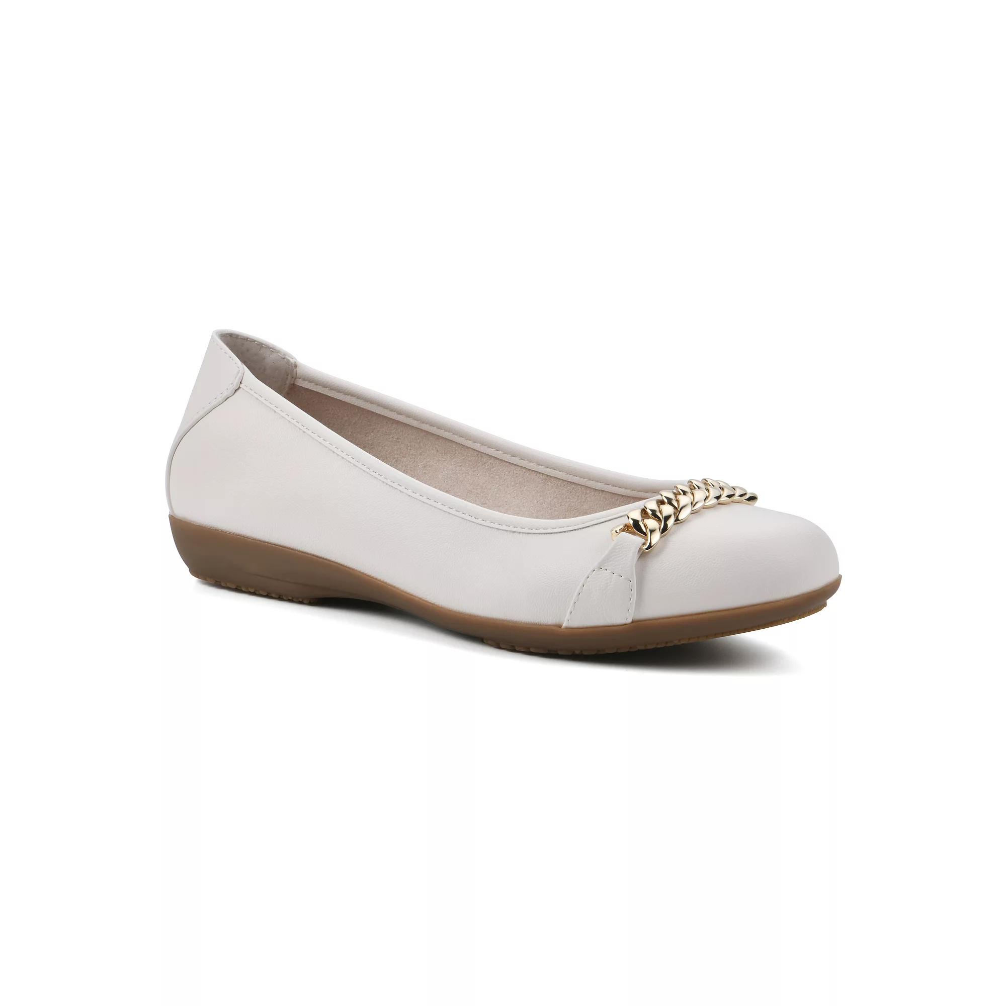 Comfortable and sophisticated style is effortless with these Cliffs by White Mountain Charmed women's ballet flats. Click this FOOTWEAR GUIDE to find the perfect fit and more! - https://www.kohls.com/feature/shoesizeguide.jsp. SHOE FEATURES: Chain detail upper, Foam midsole for added comfort, Slip-on for easy on and off. SHOE CONSTRUCTION: Polyurethane, fabric upper, Manmade lining and outsole, Foam midsole. SHOE DETAILS: Round toe, Slip-on, Foam footbed, 0.75-in. platform. Size: 6.5 Wide. Color: Cream Smo. Gender: female. Age Group: adult. Material: SYNTHETIC.