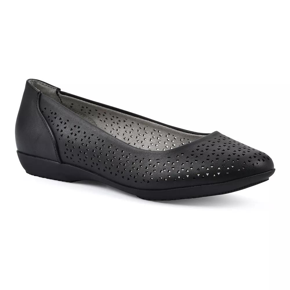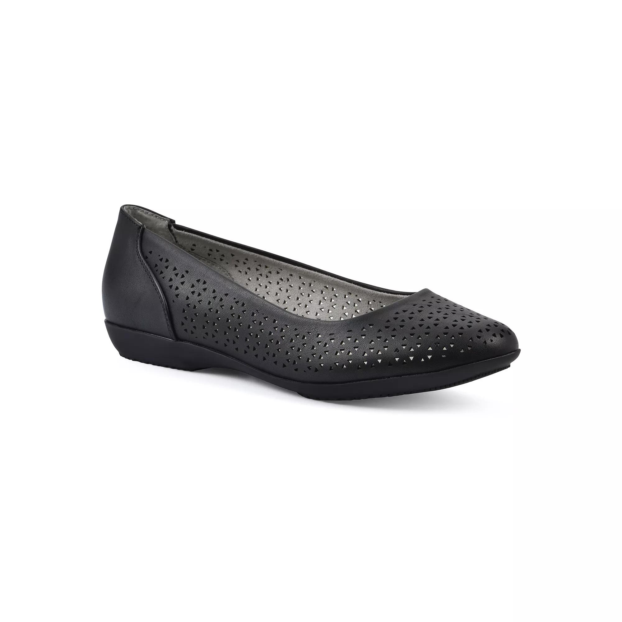 Step into style with these Cliffs by White Mountain Cindy women's ballet flats. Click this FOOTWEAR GUIDE to find the perfect fit and more! - https://www.kohls.com/feature/shoesizeguide.jsp. FEATURES: Perforated detail, Cushioned insole, Flexible outsole. DETAILS: Polyurethane upper, Synthetic lining and outsole, Round toe, Slip-on, 0.75-in. heel, Spot clean, Imported. Size: 6.5 Wide. Color: Black Burnished Smo. Gender: female. Age Group: adult.