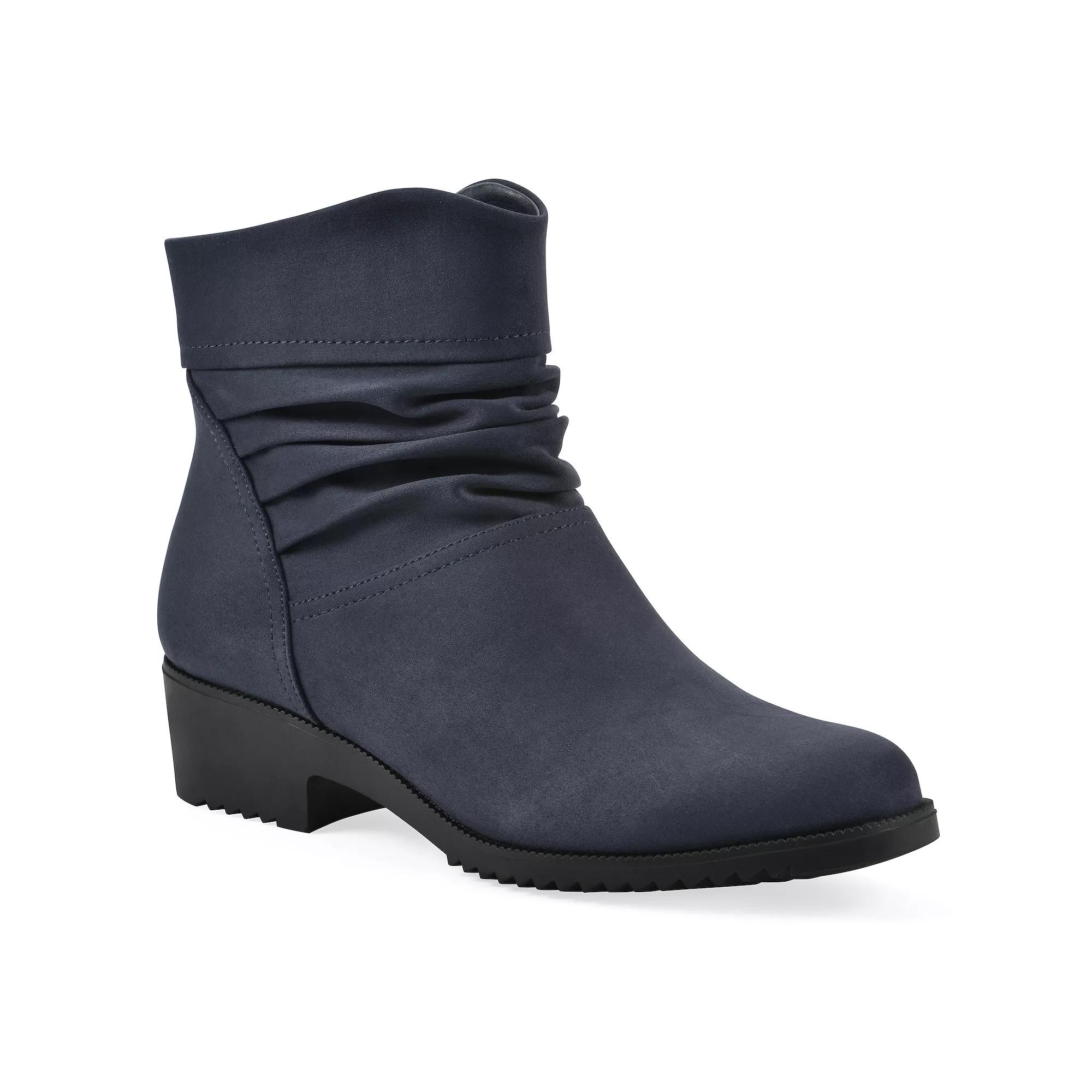 Elevate your cold weather looks with these Cliffs by White Mountain Durbon Women's Ankle Boots. Click this FOOTWEAR GUIDE to find the perfect fit and more! - https://www.kohls.com/feature/shoesizeguide.jsp. FEATURES: Slouch design, Block heel. DETAILS: Textile, polyurethane upper, Synthetic lining, Man made outsole, Round toe, Zipper closure, EVA footbed, Treaded outsole, 1.5 in. heel, 0.5 in. platform, 4.5 in. shaft, 9.5 in. circumference, Spot clean, Imported. Size: 10 Wide. Color: Navy Fabric. Gender: female. Age Group: adult.