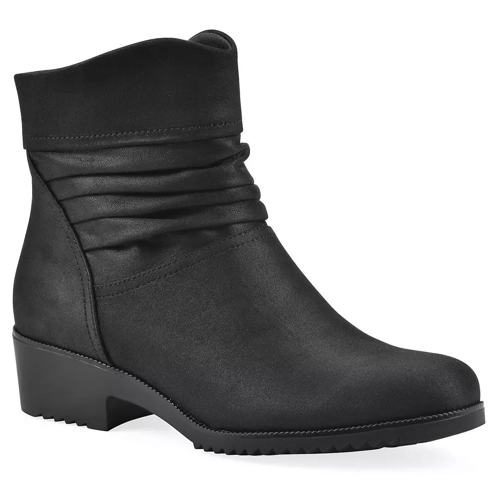 Elevate your cold weather looks with these Cliffs by White Mountain Durbon Women's Ankle Boots. Click this FOOTWEAR GUIDE to find the perfect fit and more! - https://www.kohls.com/feature/shoesizeguide.jsp. FEATURES: Slouch design, Block heel. DETAILS: Textile, polyurethane upper, Synthetic lining, Man made outsole, Round toe, Zipper closure, EVA footbed, Treaded outsole, 1.5 in. heel, 0.5 in. platform, 4.5 in. shaft, 9.5 in. circumference, Spot clean, Imported. Size: 7. Color: Black Fabric. Gender: female. Age Group: adult.