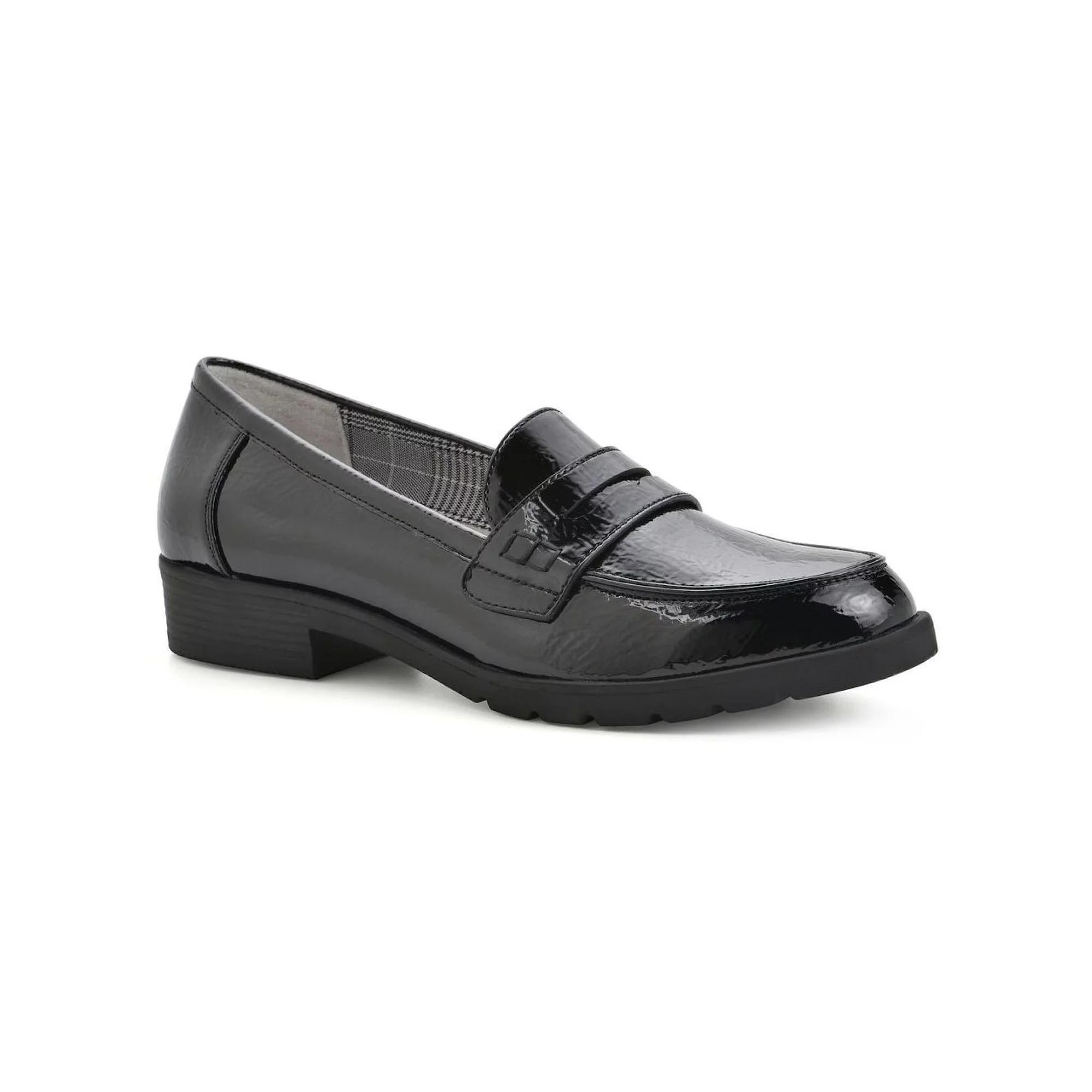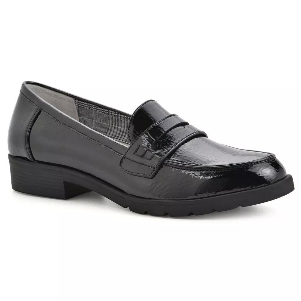 Get ready for work in style with these Cliffs by White Mountain Galah Women's Loafers. Click this FOOTWEAR GUIDE to find the perfect fit and more! - https://www.kohls.com/feature/shoesizeguide.jsp. FEATURES: Penny loafer style. DETAILS: Polyurethane upper, Synthetic lining, Manmade outsole, Round toe, Slip-on, Polyurethane footbed, Lug outsole, 1.5-in. heel, 0.5-in. platform, Spot clean, Imported. Size: 8.5. Color: Black Patent. Gender: female. Age Group: adult.
