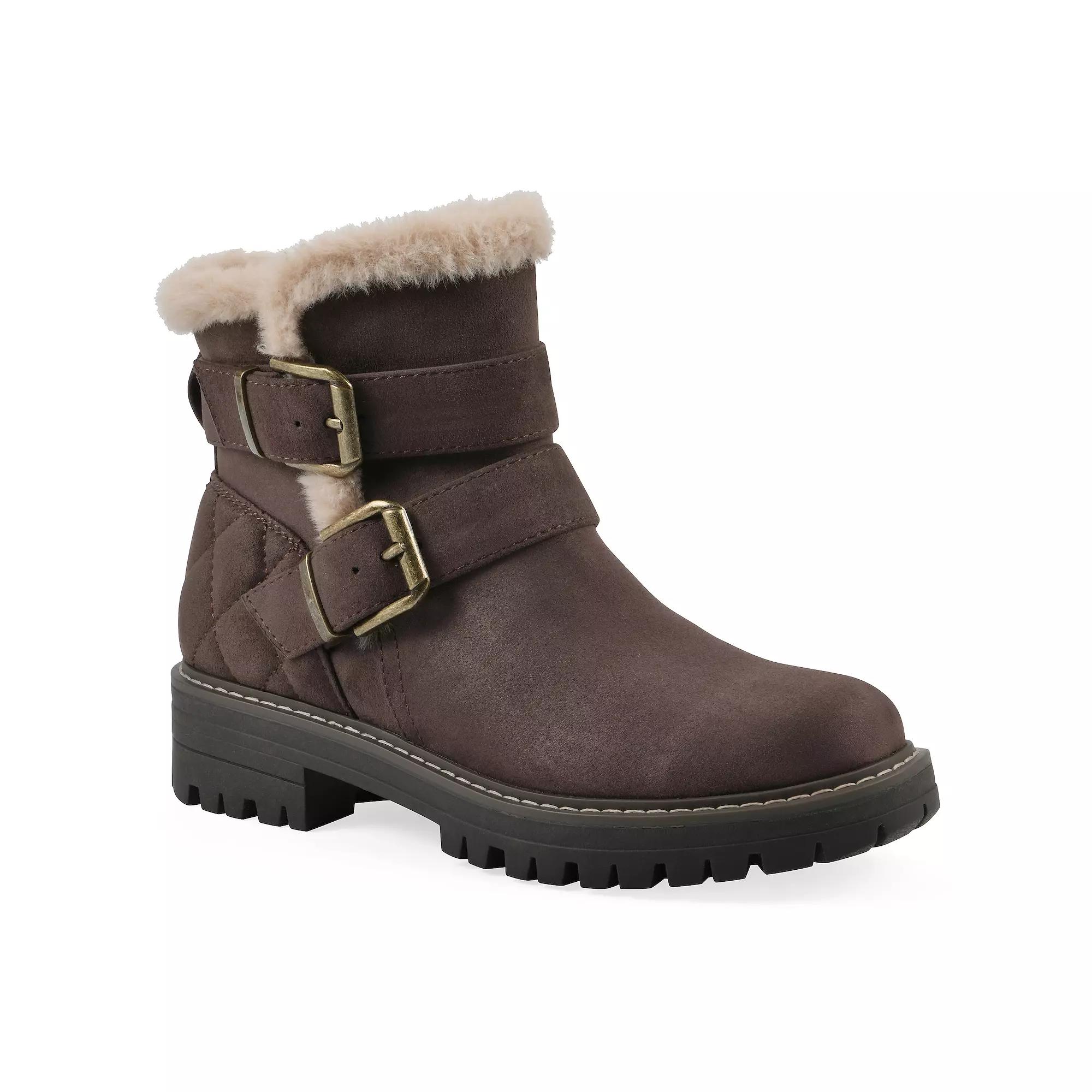 When the chill sets in, embrace effortless style with the striking bootie from Cliffs by White Mountain. Featuring a chic quilted heel, luxurious faux shearling lining, and bold buckle accents, these ankle boots are the ideal companion for both cozy days and chic outings. Click this FOOTWEAR GUIDE to find the perfect fit and more! - https://www.kohls.com/feature/shoesizeguide.jsp. FEATURES: Quilted heel for added style and support, Plush faux shearling lining for warmth and comfort, Bold buckle detailing for a trendy look. DETAILS: Round toe, Zipper closure, Heel height: 1.5", Platform height: 1", Treaded outsole, Imported. FIT & SIZE: Boot shaft circumference: 11", Boot shaft height: 5". MATERIAL & CARE: Textile upper, Synthetic lining, Foam footbed, Man-made outsole, Spot clean. Size: 9 Wide. Color: Dark Brown Fabric. Gender: female. Age Group: adult.