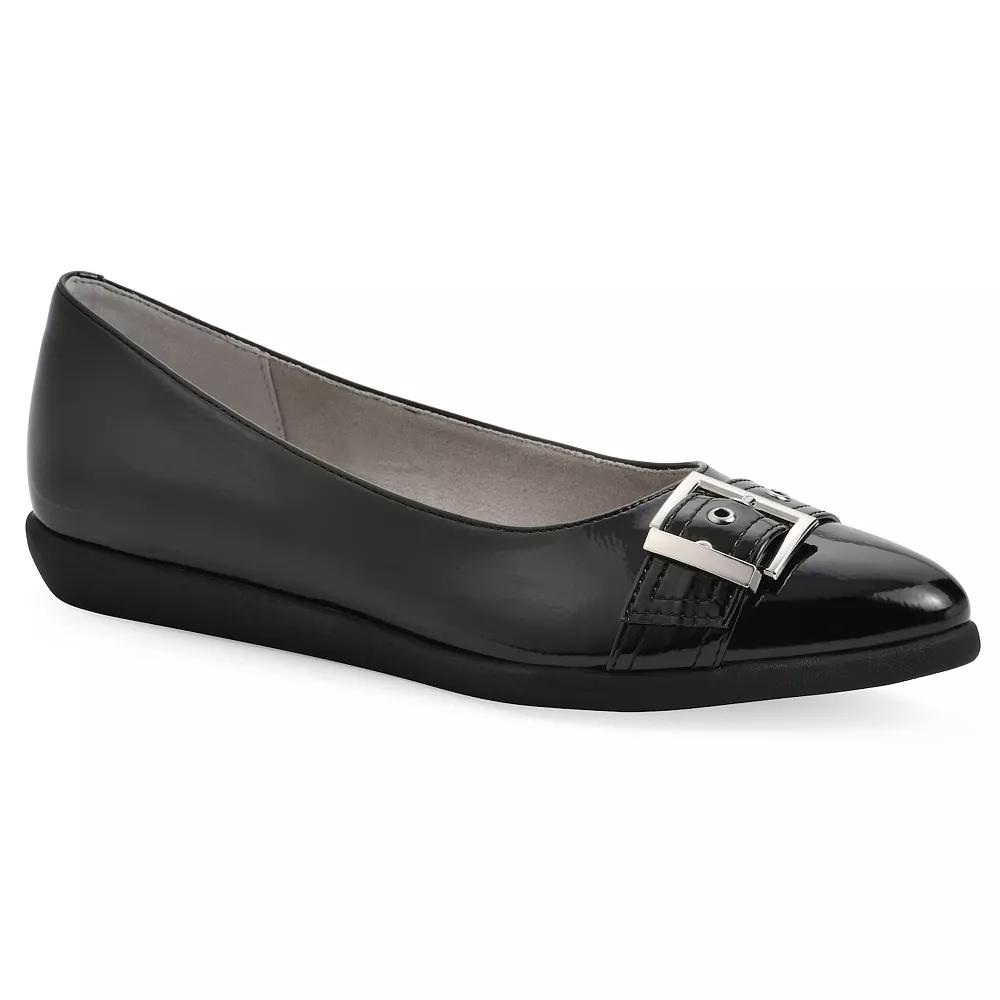Discover effortless sophistication with these chic ballet flats from Cliffs by White Mountain. The charming almond toe design and polished buckle accent combine style and comfort, making them the perfect choice for both work meetings and evening outings. Click this FOOTWEAR GUIDE to find the perfect fit and more! - https://www.kohls.com/feature/shoesizeguide.jsp. FEATURES: Polished buckle accent, Cushioned insole provides all day comfort. DETAILS: Slip-on, Treaded outsole, Almond toe, 0.5-in. heel, Imported. MATERIAL & CARE: Polyurethane upper, Man made outsole, Synthetic lining, Foam footbed, Spot clean. Size: 7. Color: Black Patent. Gender: female. Age Group: adult.