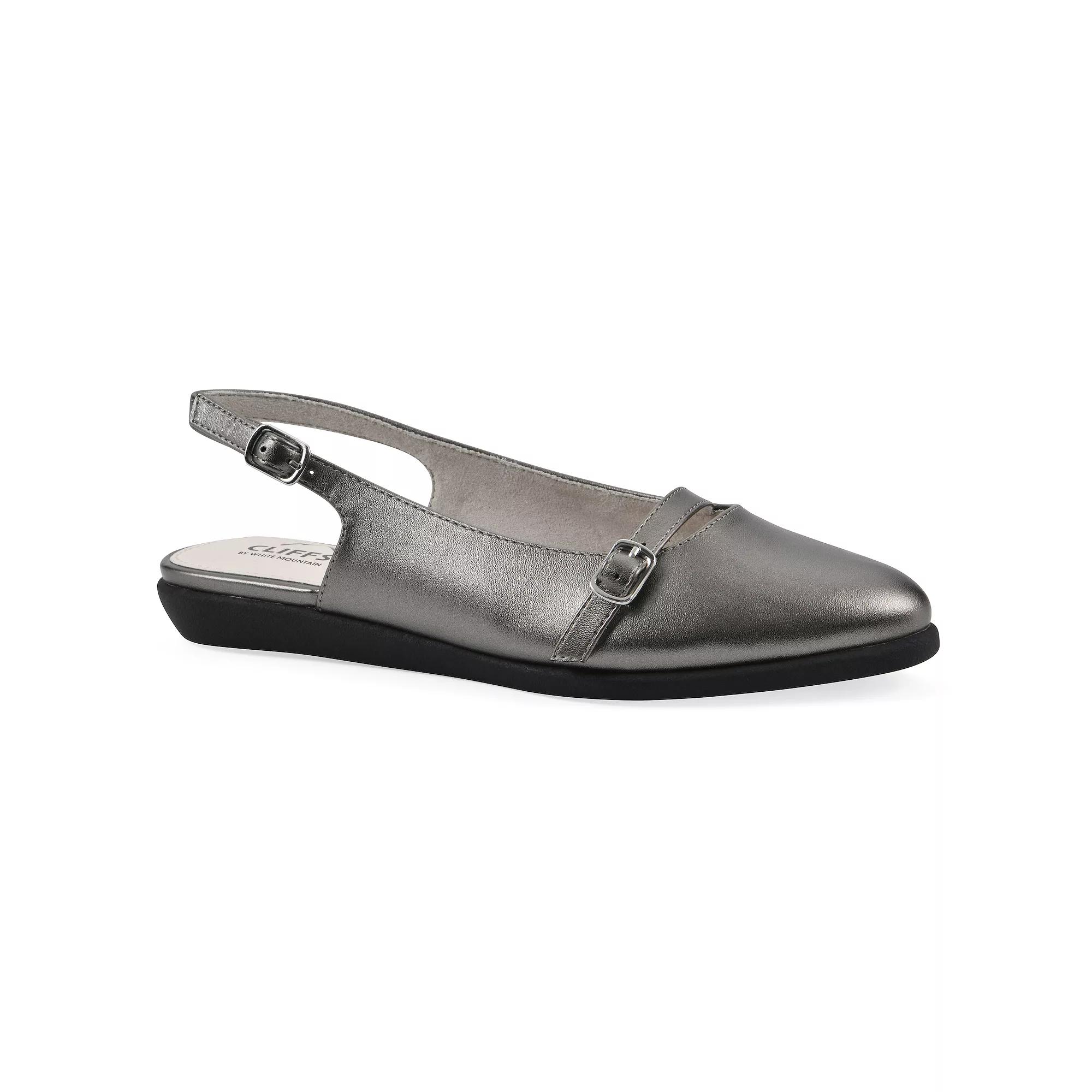 Discover effortless elegance with Cliffs by White Mountain's chic ballet flats, featuring a flattering almond toe and an adjustable slingback buckle for a perfect fit. With a cushioned insole for all-day comfort, these stylish shoes effortlessly transition from the office to evening outings, making them a must-have addition to your wardrobe. Click this FOOTWEAR GUIDE to find the perfect fit and more! - https://www.kohls.com/feature/shoesizeguide.jsp. FEATURES: Cushioned insole provides all day comfort, Versatile design easily transitions from office hours to after hours. DETAILS: Buckle closure, Treaded outsole, Almond toe, 0.5-in. heel, Imported. MATERIAL & CARE: Polyurethane upper, Man made outsole, Synthetic lining, Foam footbed, Spot clean. Size: 9.5. Color: Pewter Metallic. Gender: female. Age Group: adult.