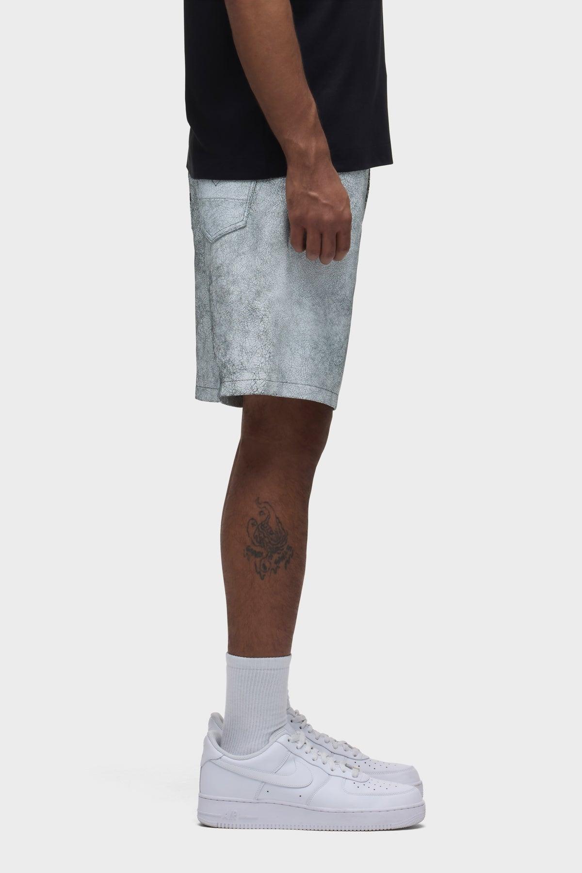 Description The Clint Relaxed Short in Cracked White is a versatile essential with a laid-back, straight fit. This pair is made of 100% lambskin leather. Product Details Front Rise: 12.25", Leg Opening: 23", Inseam: 8.25"Model Height 6’1"Model wearing size 32Measurements based on size 32 Fit & Care Content: 100% Lamb LeatherCare of Leather Specialist Only