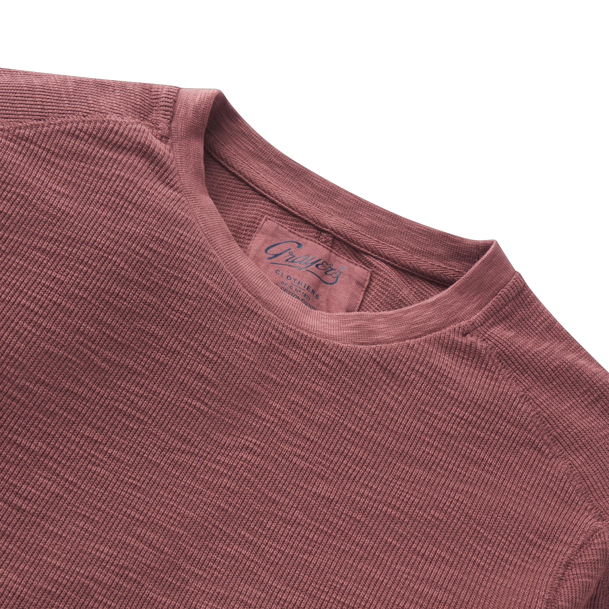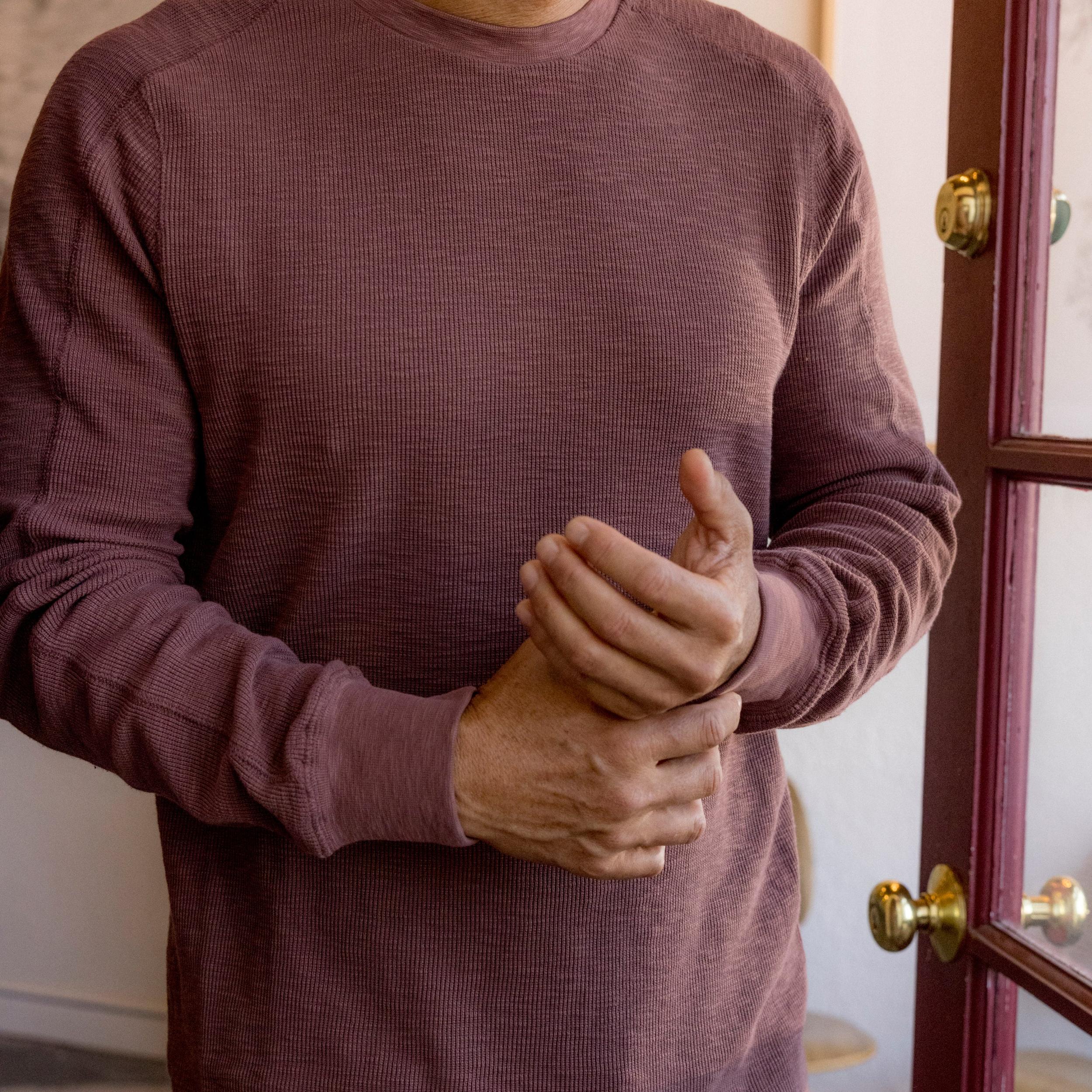 Not your ordinary crewneck. This grown-up version replaces fleece with a modern, mid-weight waffle stitch. It’s a specially knitted "thermal" using hefty yarn but constructed in a loose comfortable weight. A staple that was soil-worn in all those 60's Spaghetti Westerns, our waffle crew is comfortable enough to be worn as an under layer and structured enough to wear over a shirt. Finely finished with athletic cover-lock stitching on the shoulder and arms. The Model is also wearing: Model: ----Details---- Crew neck Cover-lock stitched seams Straight hem with over-lock stitching 100% Cotton Imported ----Materials---- 100% Cotton ----Size & Fit---- Measuring Method: All measurements are in inches and based on a “flat” garment, as shown below. For comparison with one of your existing garments, please lay garment on a flat surface and follow the key measurement points. For chest and neck, if you double the flat measurement, you will get close to the full body measurement. ----Care---- Machine Wash Cold Separately Do Not Soak Before Washing Do Not Bleach Remove Promptly Tumble Dry Low Or Hang Dry In Shaded Area Cool Iron If Necessary