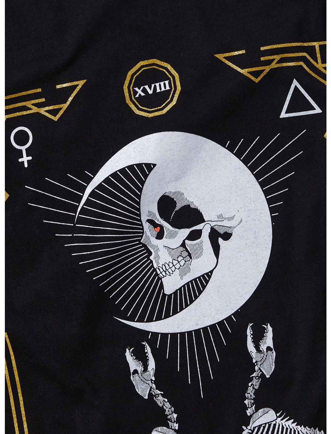 The cards are telling you that you need a new tee! Add some mystical energy to your look with this shirt, featuring a tarot card-inspired print of the Moon card with glitter details, skeletal creatures and a skull moon.100% cottonWash cold; dry lowGlitter detailsImportedListed in men's/unisex sizes