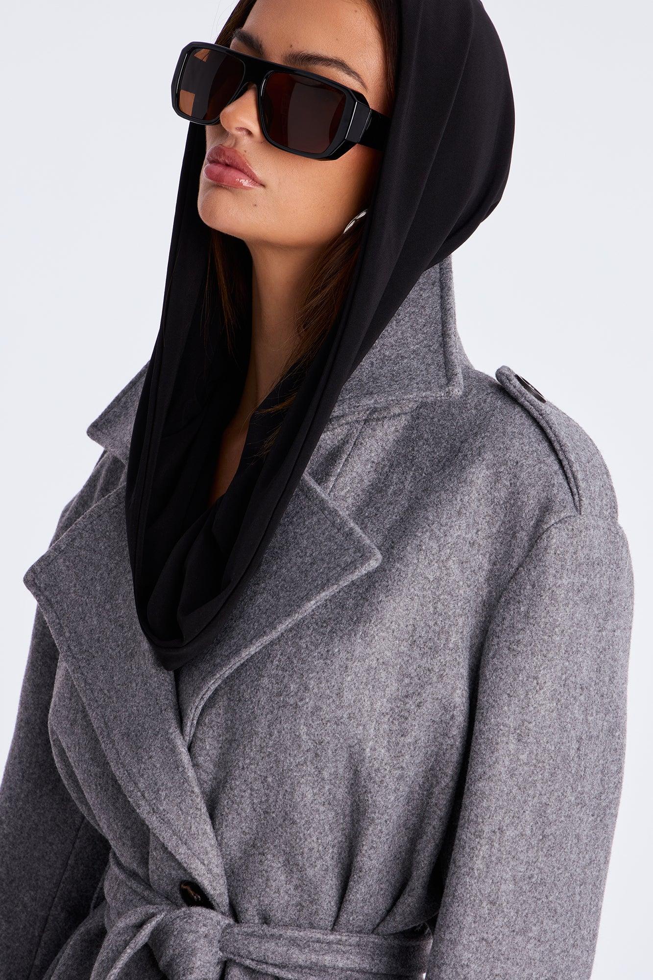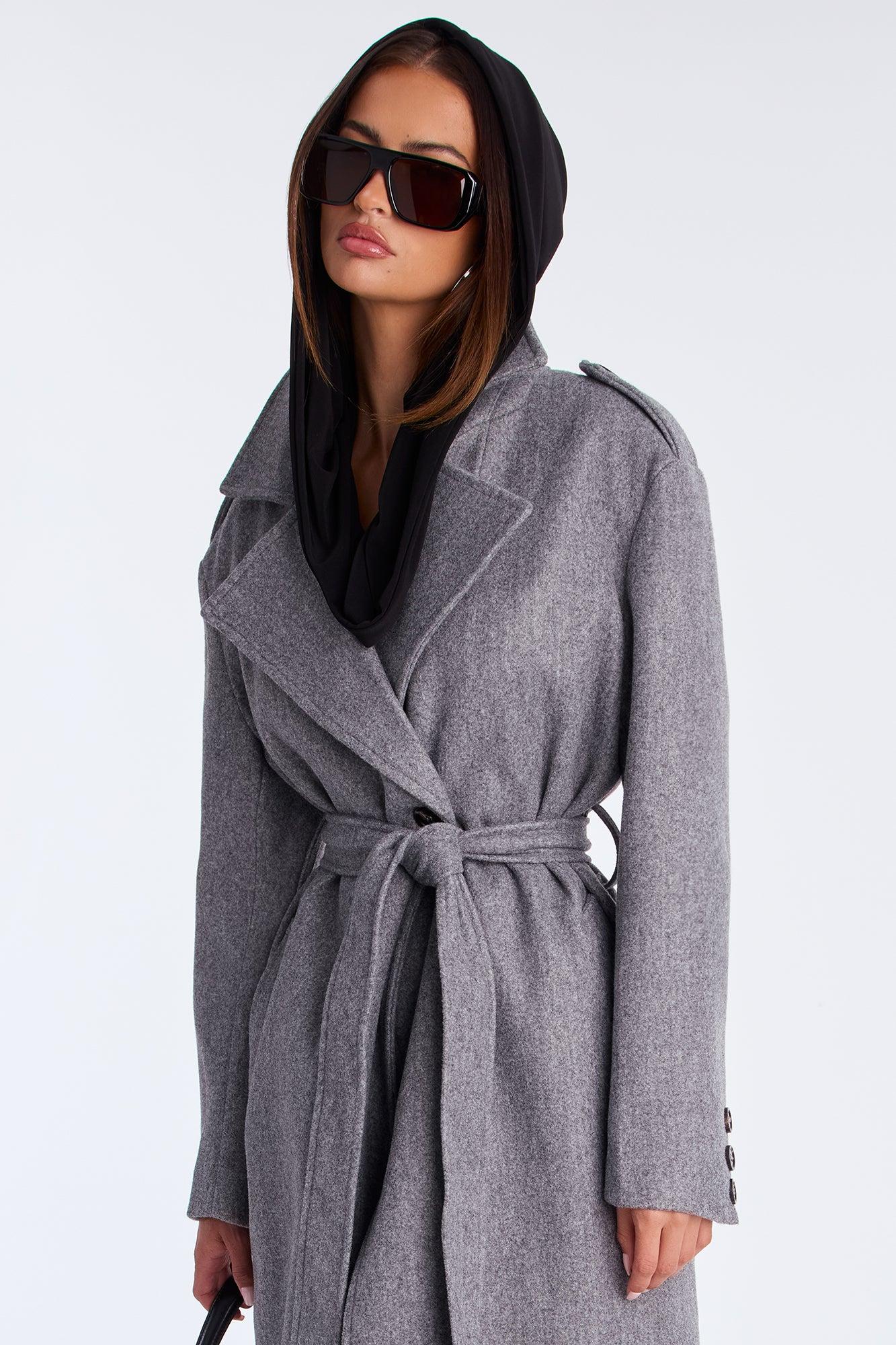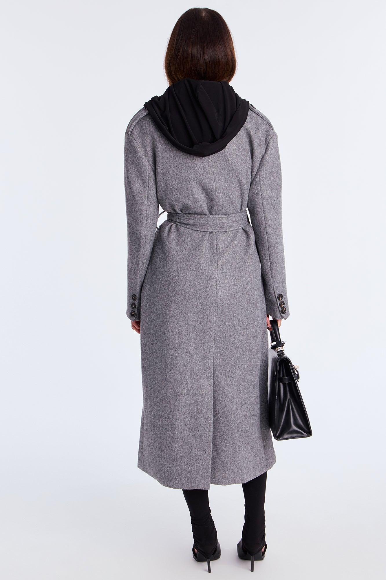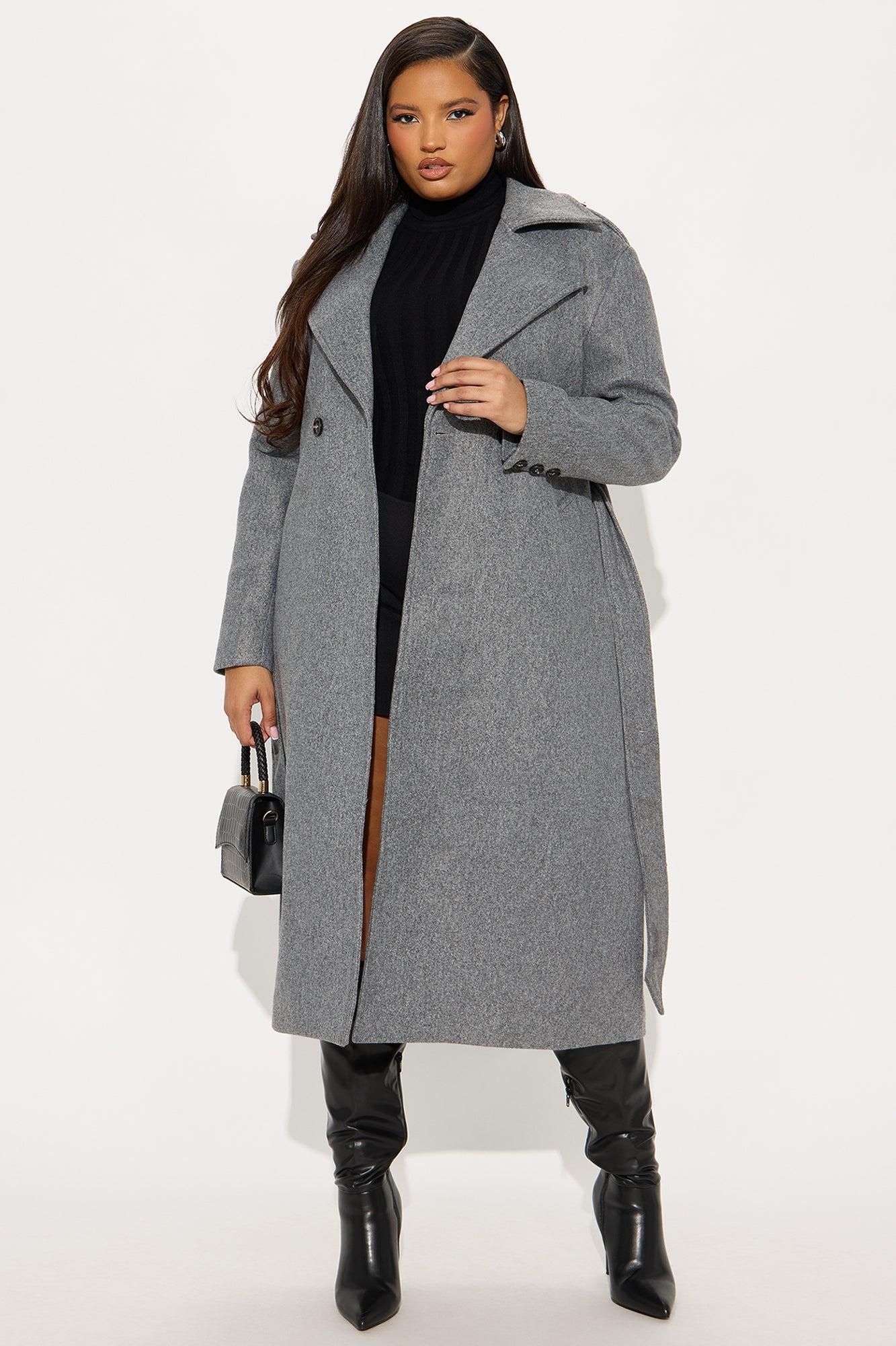 Clocked Out Double Breasted Long Coat - Grey Female