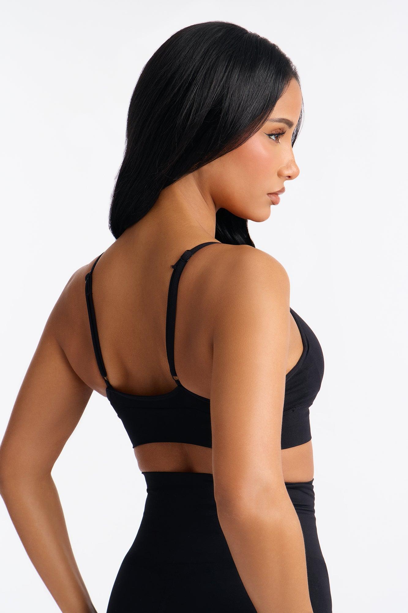 Available In Black, Heather Grey And Mocha. Deep Plunge Seamless Bra Adjustable Straps Lightly Padded Under Bust Compression Ribbed Band Final Sale Self : 92% Nylon 8% Elastane Imported