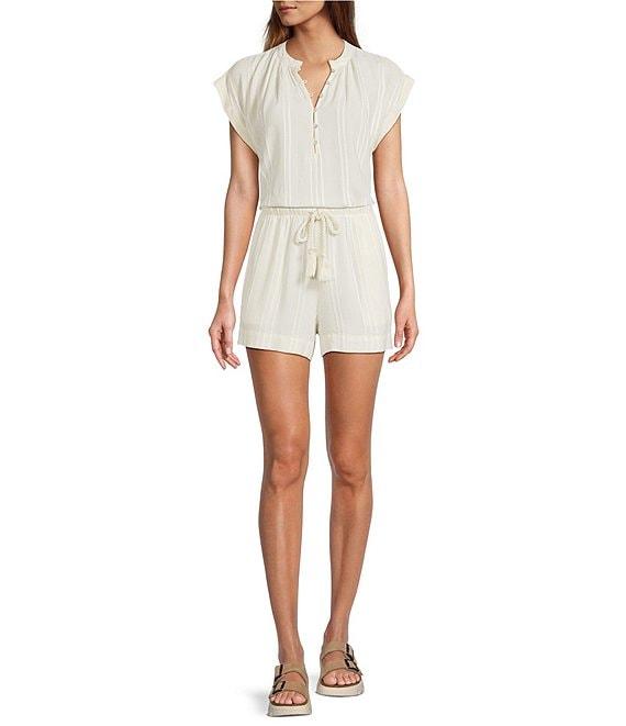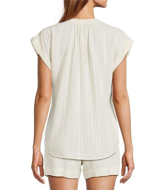 Cloth & Stone Coordinating Linen Blend Knit Striped Henley Cap Sleeve Pullover