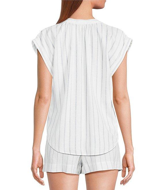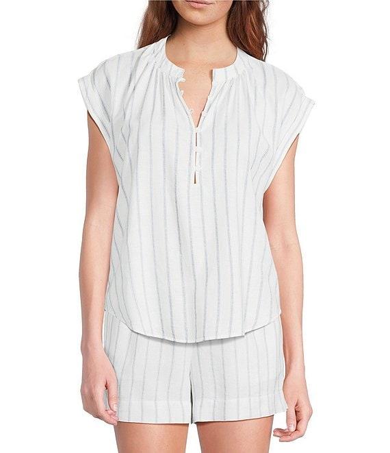 Cloth & Stone Stripe Linen Blend Mandarin Collar Short Sleeve Coordinating Top
