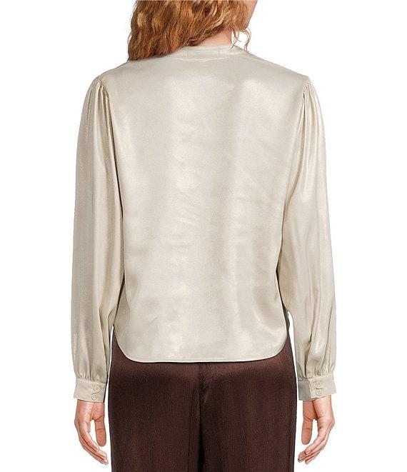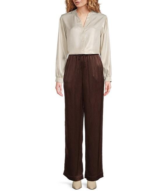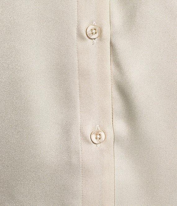 From Cloth & Stone, this top features: Woven fabrication Mandarin button down collar Long sleeves Button front closure Approx. 24" HPS in length Polyester Machine wash cold and do not bleach/tumble dry low, warm iron as needed/do not dry clean. Imported.