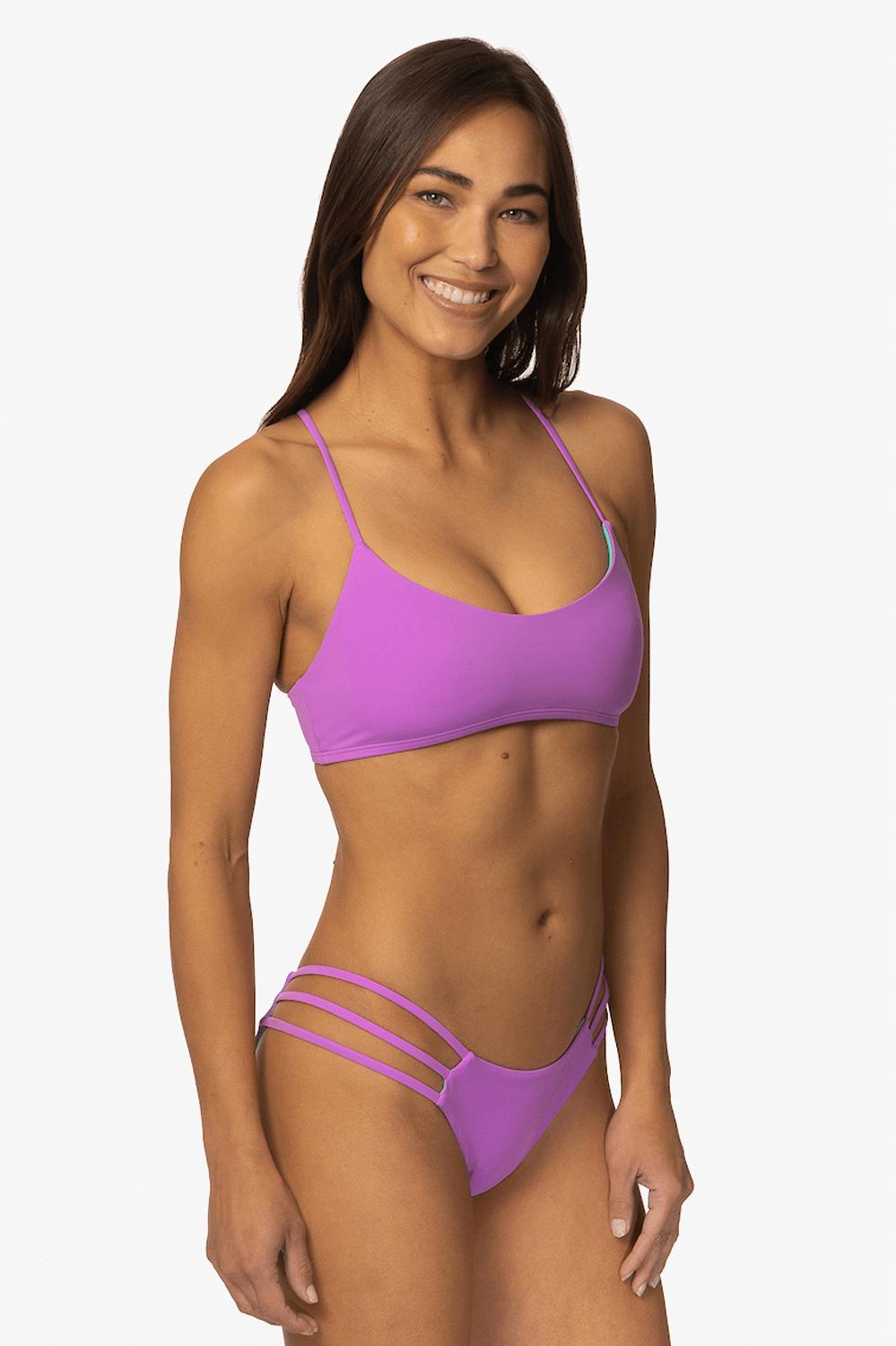 The Cloud Break women's bikini bottom is the strappy bikini bottoms you didn't know you needed. The 3 strap detail sits perfectly over the hip for a flaired look. For those who love a cheeky bottom, these women's bikini bottoms are a staple piece you'll want them in every color. Proudly made with our Recycled Sea-Flex fabric. Features: Good for: Surfing, paddling, ocean activities, lifestyle Strappy Mid-Rise Medium/Slim Coverage (2) Low Impact (1) Lined for maximum privacy Tagless for maximum comfort Chlorine Resistant True to size Fabric Composition: Recycled Sea-Flex fabric Made out of recycled fishing nets and other discarded nylon UPF 50+ Shell: 78% Recycled Nylon 22% Elastane Liner: 78% Recycled Nylon 22% Elastane Care Instructions: Hand wash cold Hang dry Do not iron, dry clean or bleach