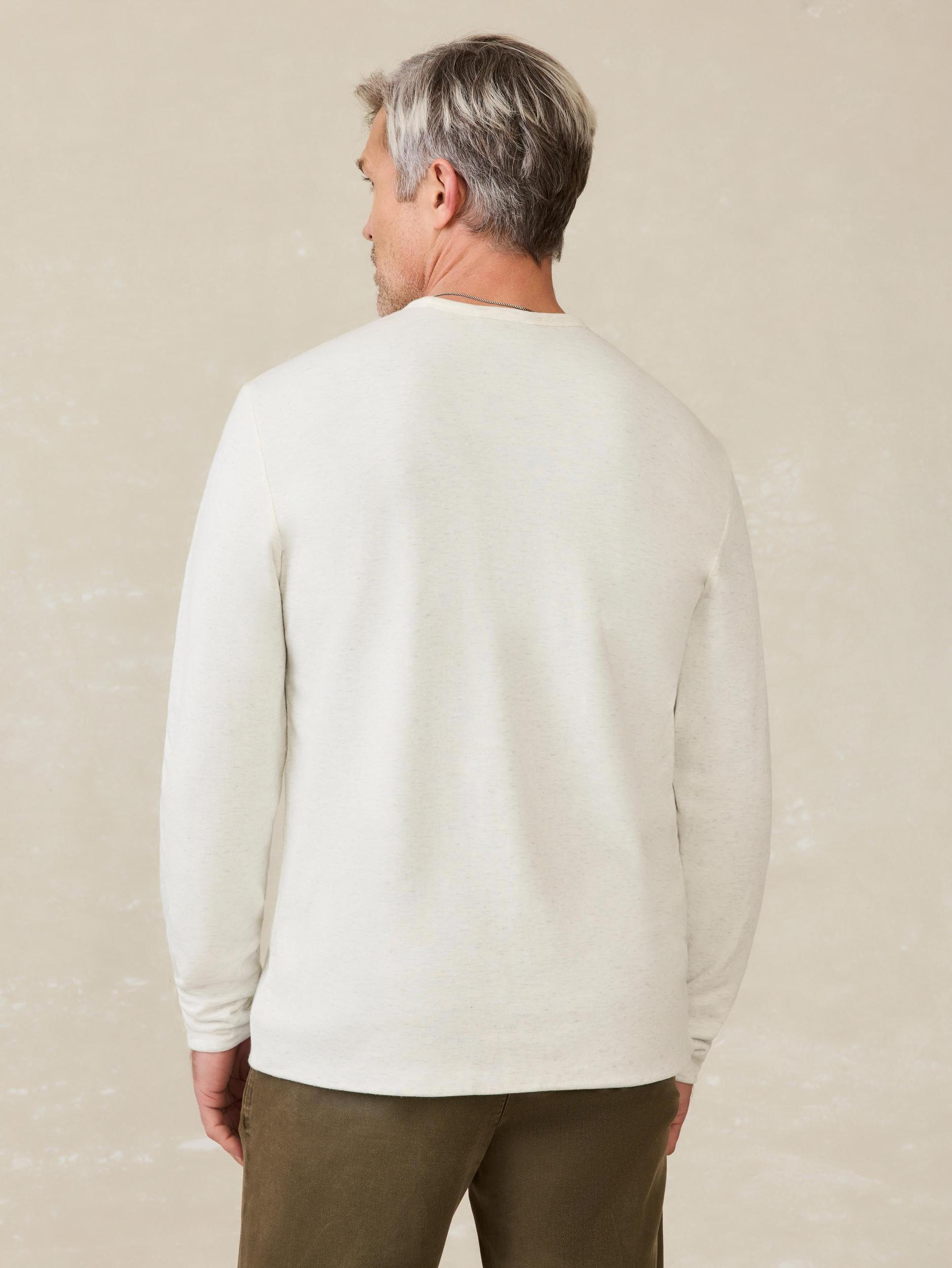 Quite possibly, the world's softest shirt. But most definitely the world's softest reversible shirt. Incredibly light and soft, this double-knit Pima cotton and modal blend crewneck is constructed of two layers of our softest Cloud knit fabric. Heathered for texture, it even features a tear-away tag to reverse flawlessly to give you another styling option. Fit: Relaxed through the body with a straight fit and tapered sleeves Detail: Fully Reversible, Tearaway Label Material: 60% Pima Cotton, 40% Modal (both sides reversible) Model: Thaddeus is 6'1 wearing size Medium Care: Turn inside out. Machine wash cold with like colors. Gentle cycle. Do not bleach. Tumble dry low. Remove promptly. Cool iron when needed. MKC0111-IBL