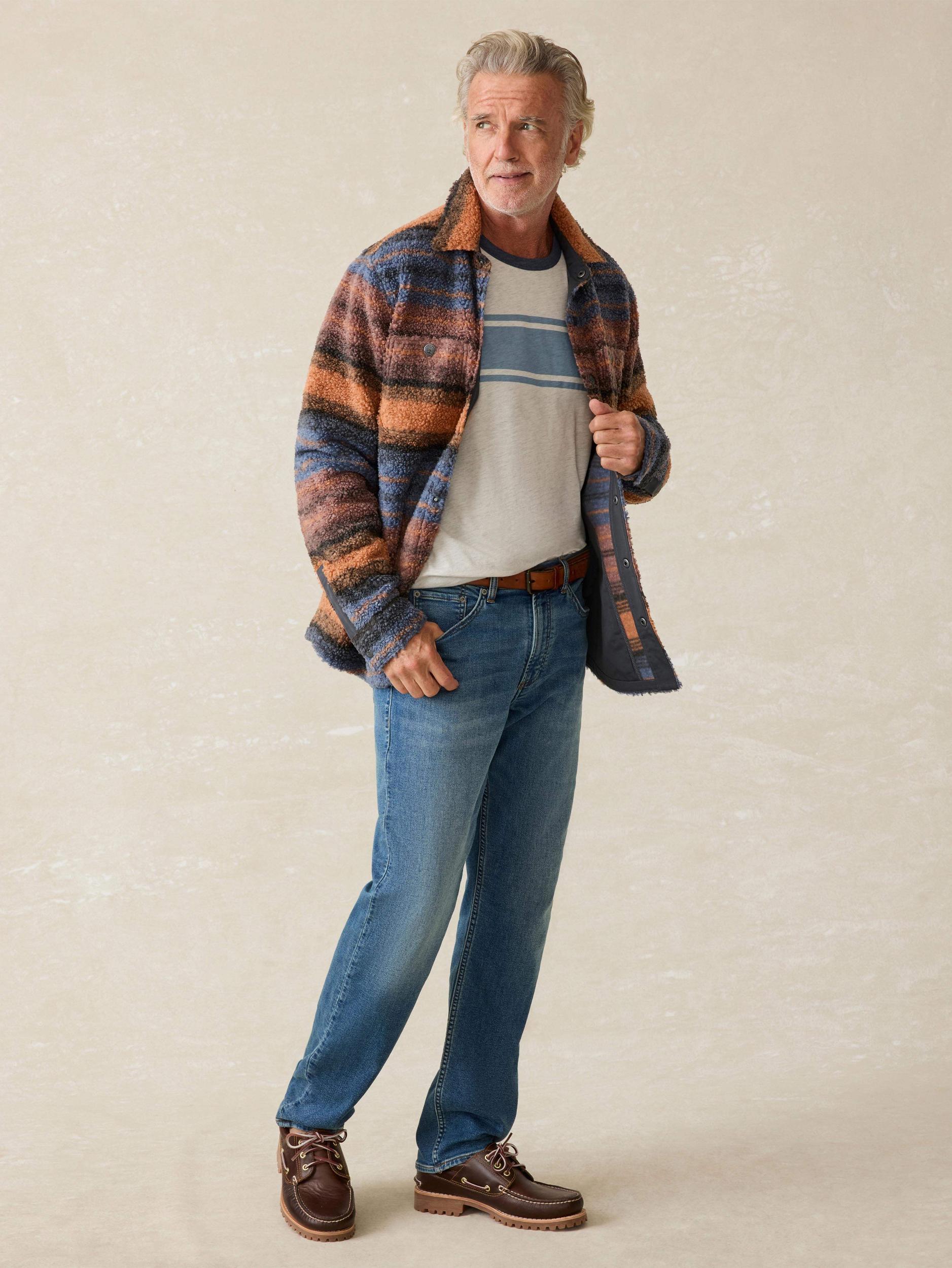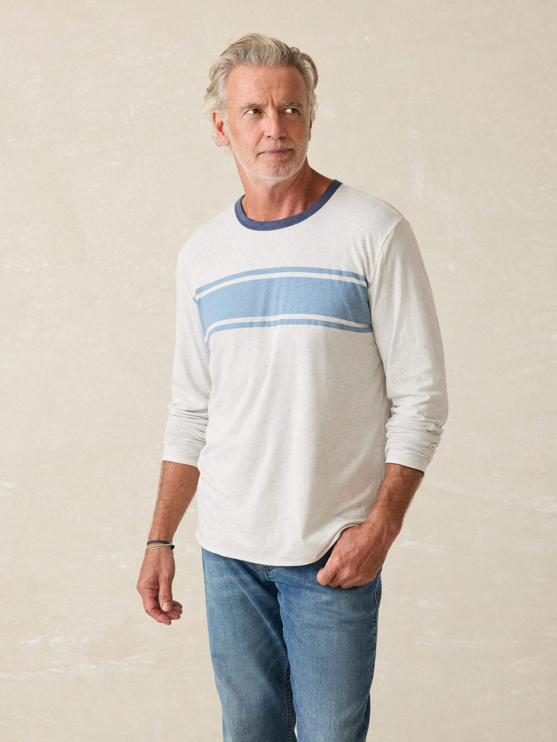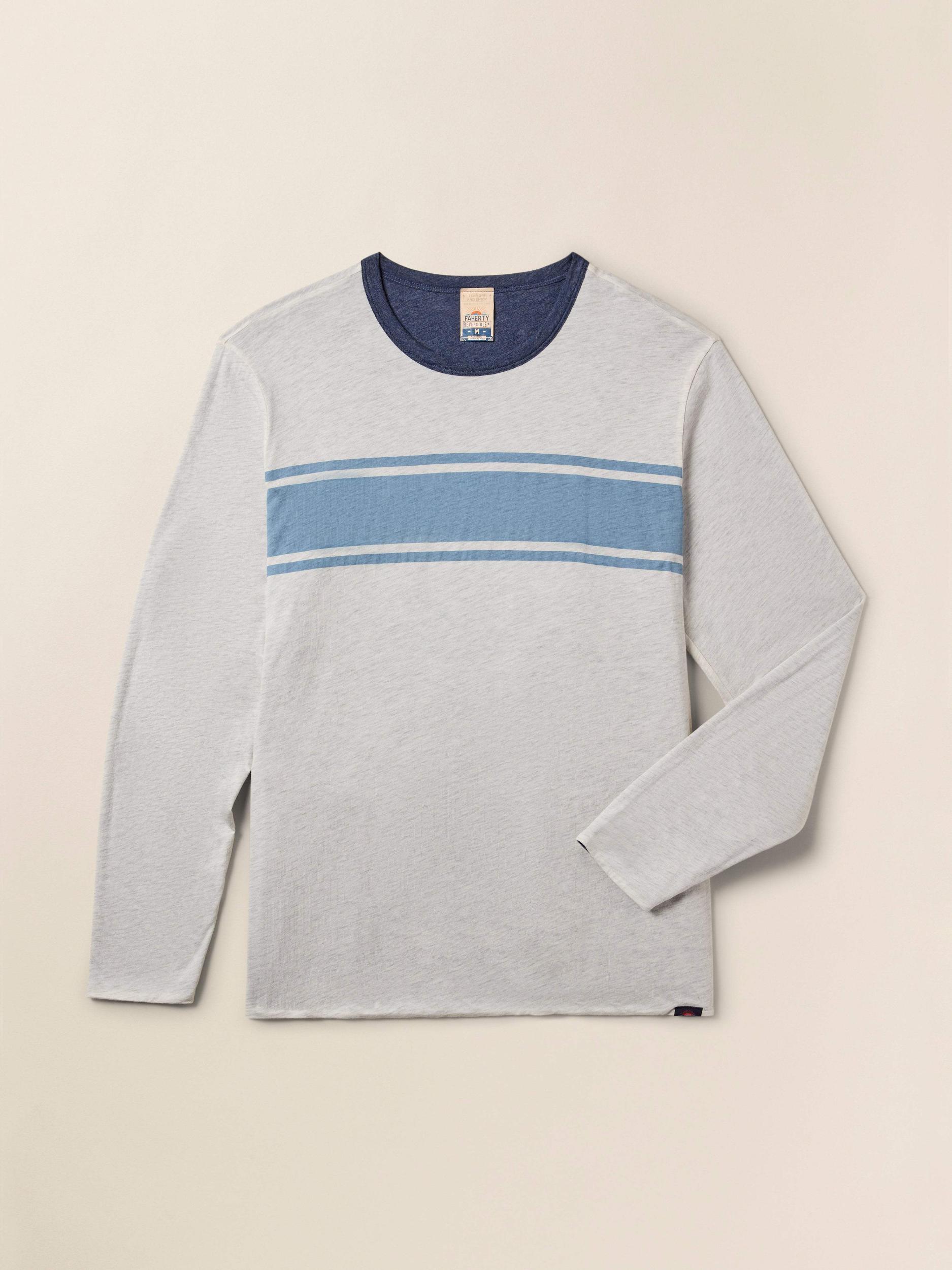 Lightweight, soft, and reversible, this double-knit Pima cotton and modal blend long-sleeve crewneck is a cozy, feel-good staple. The double-knit construction offers performance qualities, making for the perfect base layer all season long. Fit: Relaxed through the body with a straight fit and tapered sleeves Detail: Fully reversible, tearaway label. Horizontal chest stripe on lighter side. Material: 60% Pima Cotton, 40% Modal. Model: TR is 6'1 wearing size Medium Care: Turn inside out, and machine wash cold with like colors on a gentle cycle. Do not bleach. Tumble dry low, remove promptly, and cool iron when needed. MQH2403-IVH