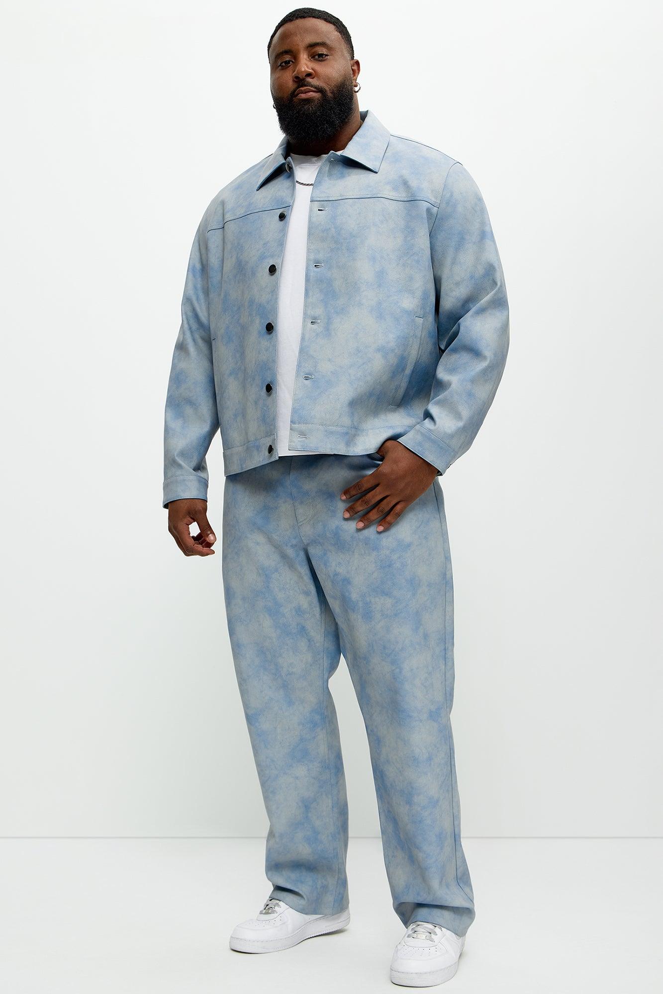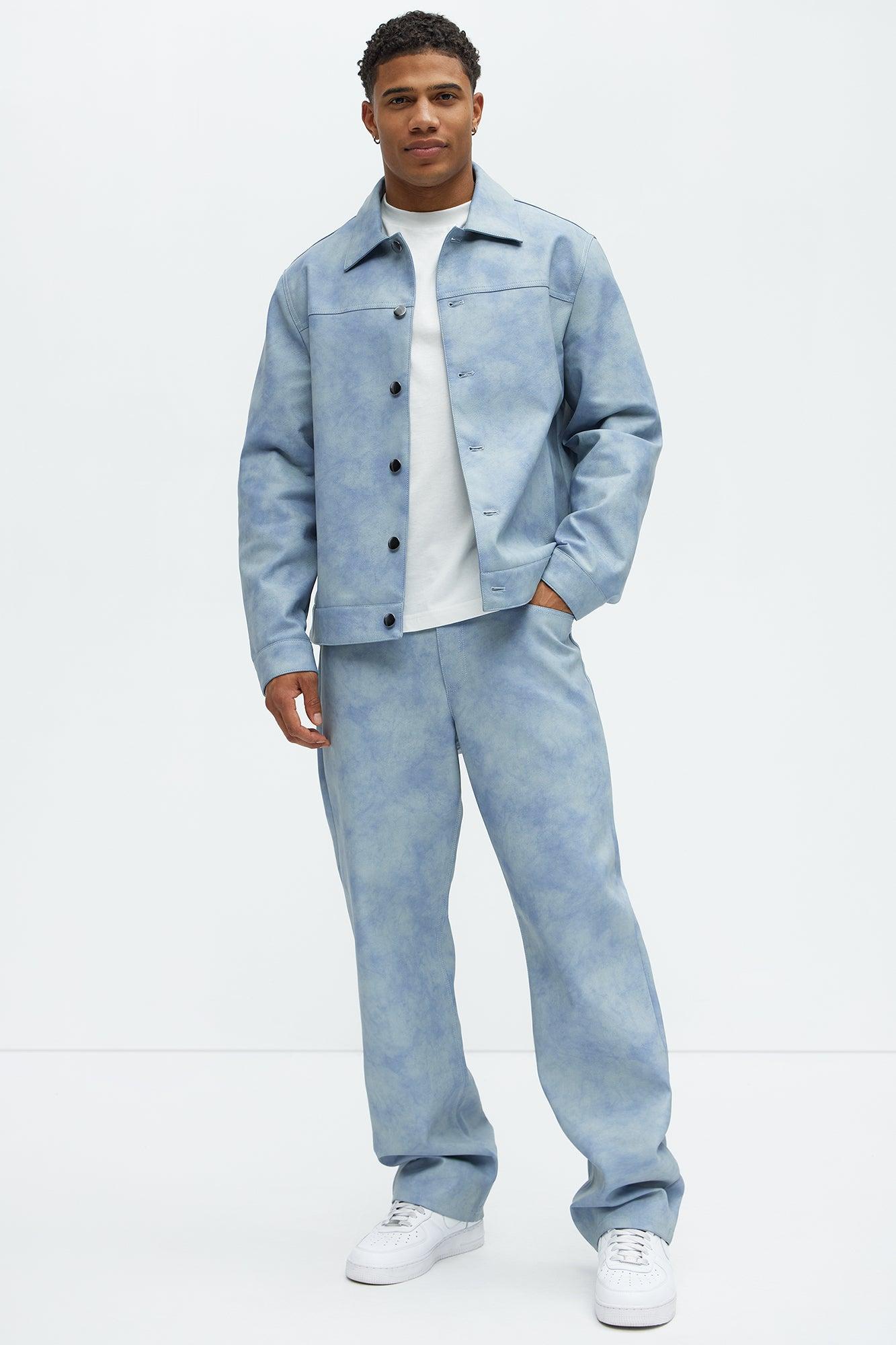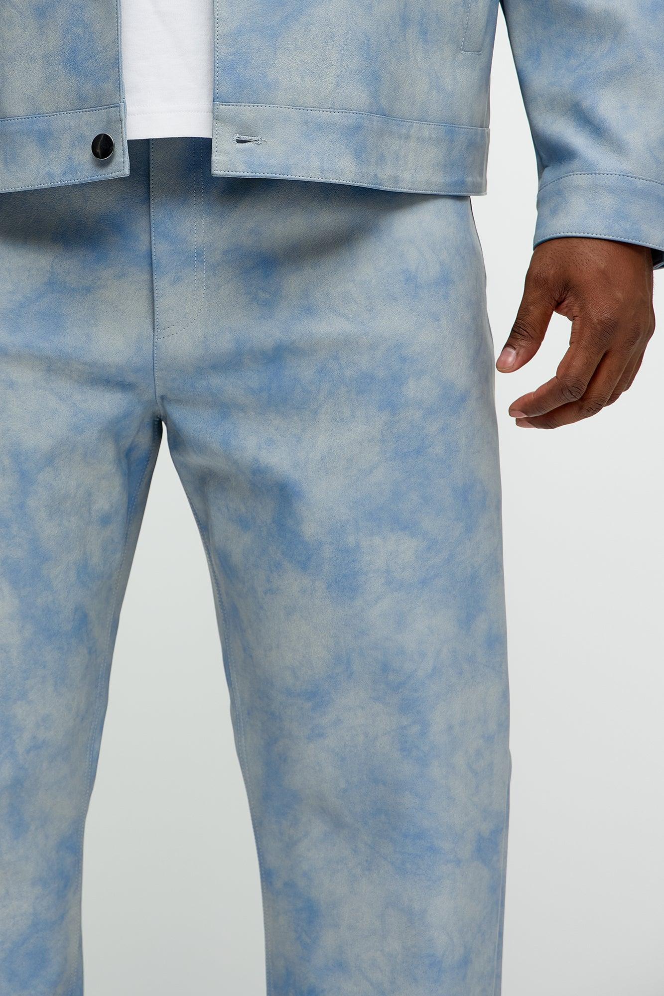 Available In Blue. Slim Fit Button Closure Zip Fly Side Hand Pockets Pair With "Cloud Wash Faux Leather Trucker Jacket" Shell Coating: 100% Polyurethane Backing: 80% Polyester, 20% Viscose Disclaimer: To Keep The Aesthetic Of This Garment, Please Follow The Care Instructions Carefully. Imported California Proposition 65WARNING: Cancer and Reproductive Harm - www.P65Warnings.ca.gov.