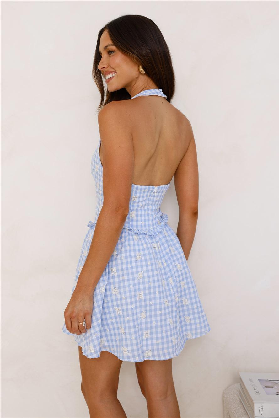 Cloudlike Charm Gingham Halter Mini Dress Blue