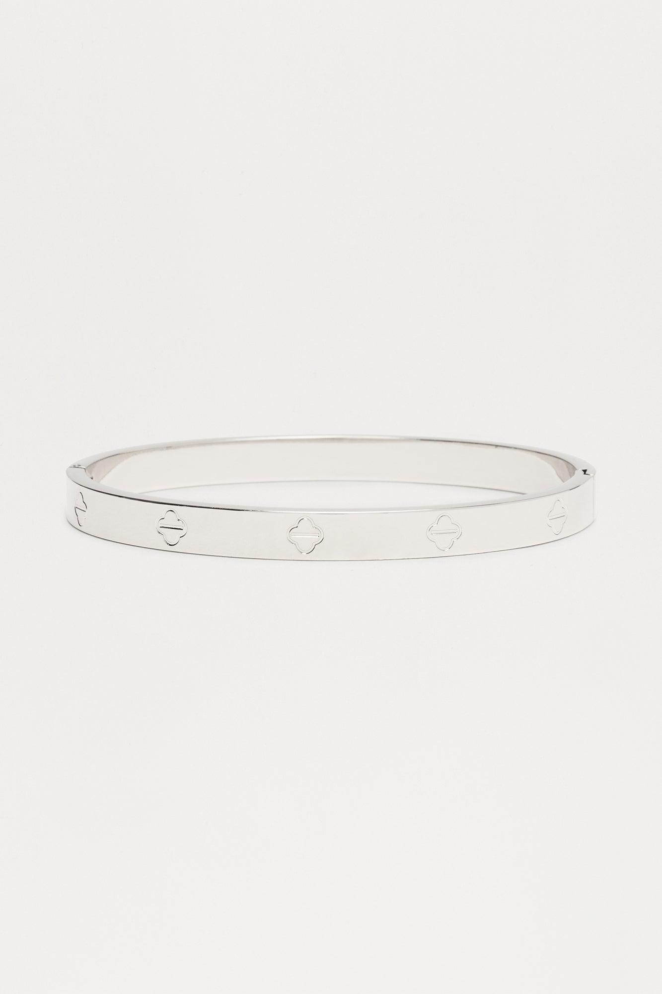 Clover Pattern Hinge Closure Bracelet - Silver