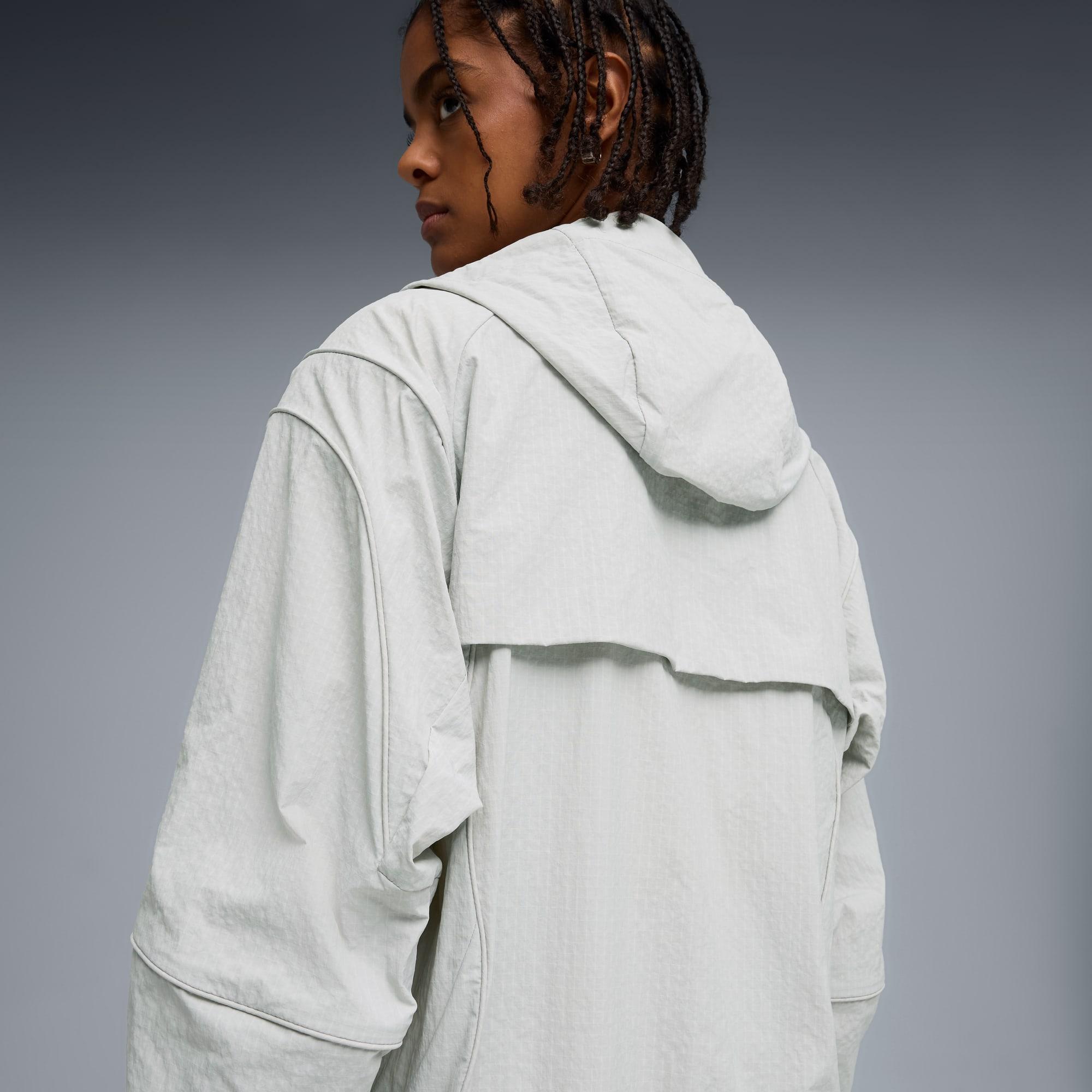 descriptionThe CLRT collection brings archive energy to the streets. With techwear touches, early ‘00s attitude, and runway-level detail, it makes a visual statement. This jacket features contouring cut lines and visible tech - just throw on your favourite PUMA kicks and own the look.Style: 634710_09Color: Cool Light Grayfeatures & benefitsWIND PROTECTION: Technical windCELL material constructions help protect against windy conditions and keep you dry and warmMade with 100% recycled material excluding trims & decorations.detailsFit: RelaxedMain material type: RipstopAdjustable hoodLong sleevesClosure: Full zipLength: Standard jacketPockets: Side zip pocketsElasticated cuffs and hemPiping detailsmaterials & careMaterial informationInserts: 100% polyesterShell: 93% nylon, 7% polyesterCare instructionsWash garment inside outWash with similar coloursUse detergent for coloursExclusive of DecorationClose all fastenings