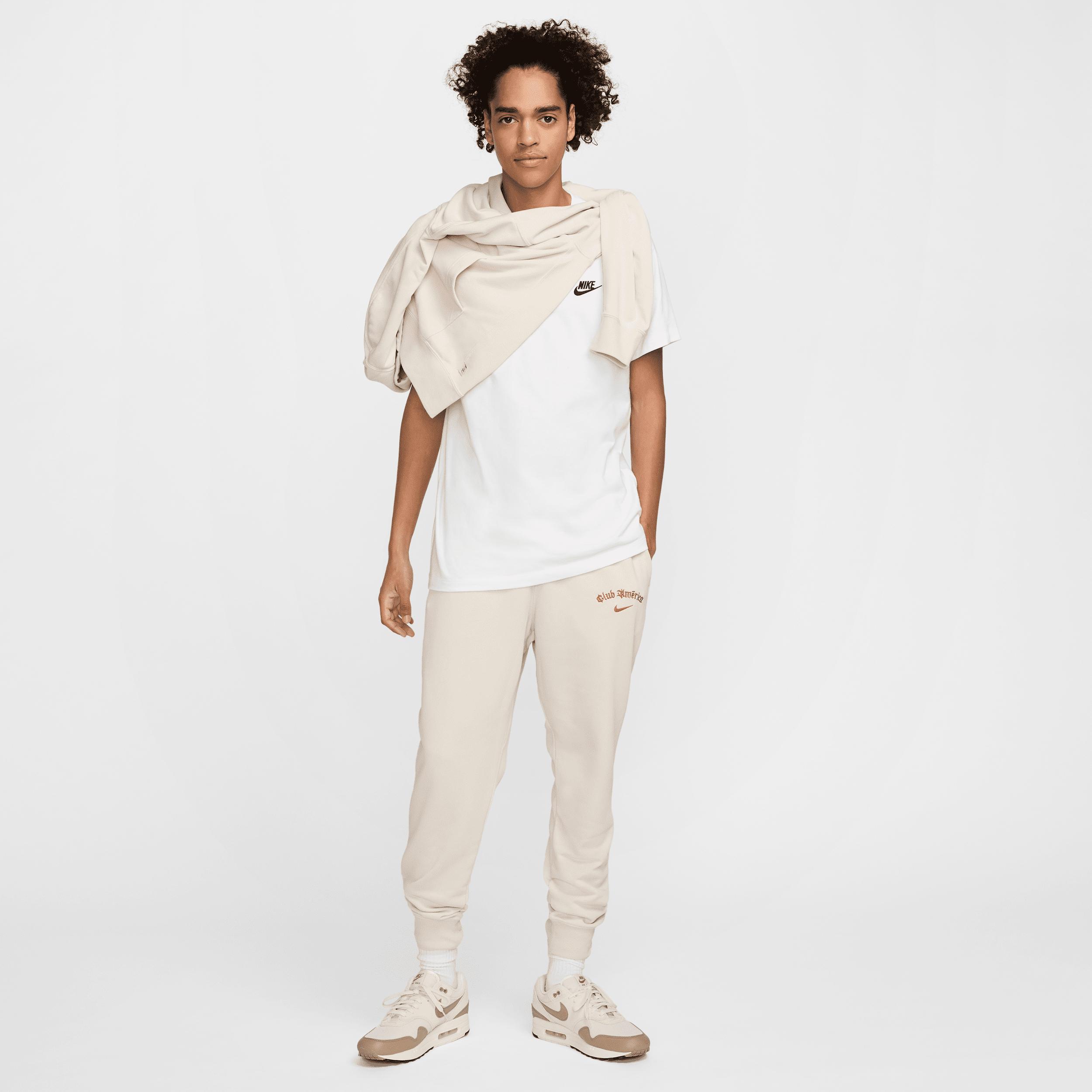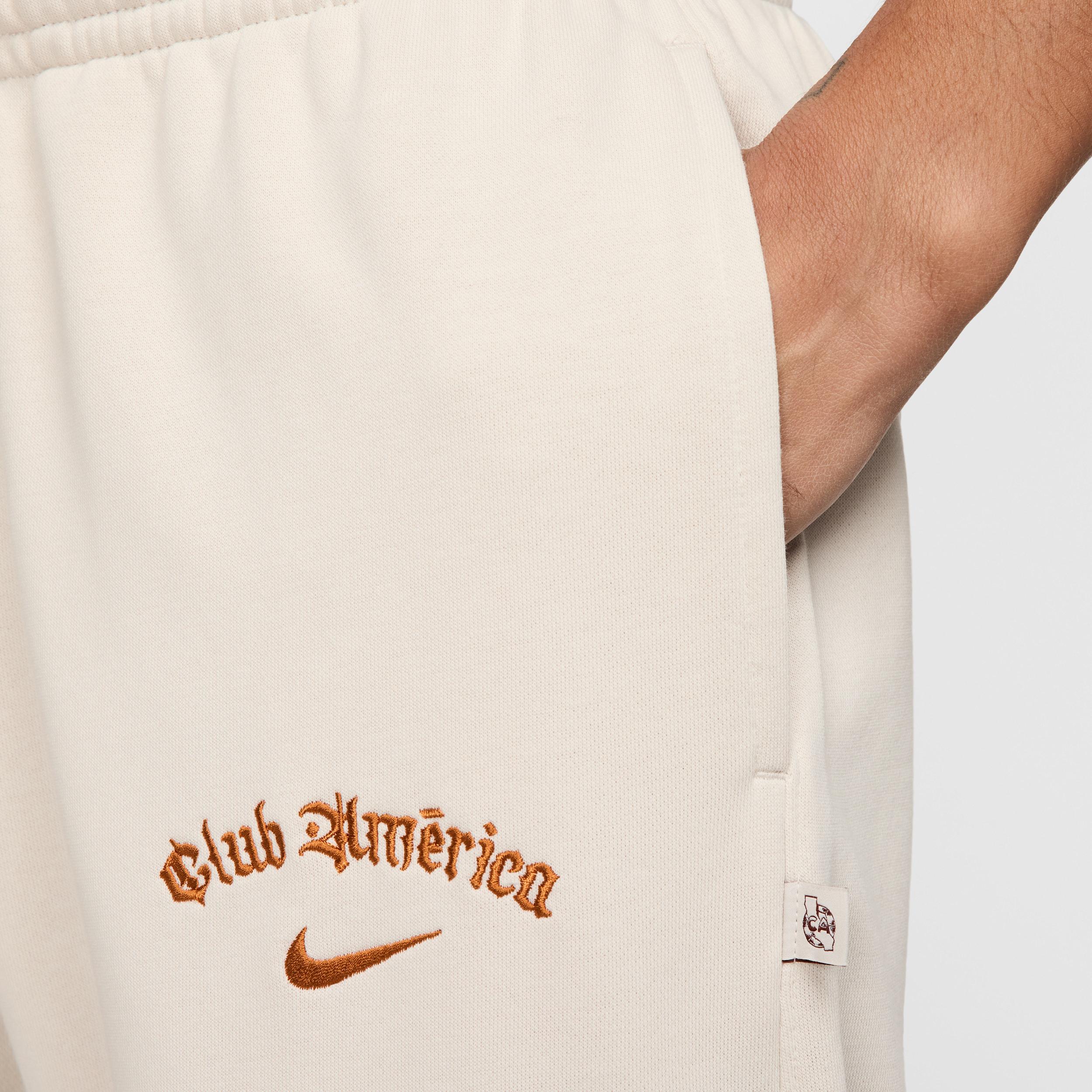 These everyday joggers are infused with Club Amrica pride to create a comfortable staple celebrating Mexican-American culture. Smooth on the outside with unbrushed loops on the inside, this breathable, midweight French terry is a versatile option you can wear all year. Product Details:Elastic waistband with drawcord. Body: 80% cotton/20% polyester. Side pocket knuckle side/Back pocket: 100% cotton. Machine wash. Imported. Style: FQ5242; Color: Light Orewood Brown/Cinder Orange; Size: M; Gender: Male; Age Group: Adult | Club Amrica Club Special Edition Mens Nike Soccer French Terry Jogger Pants in Brown, Size: Medium | FQ5242-104
