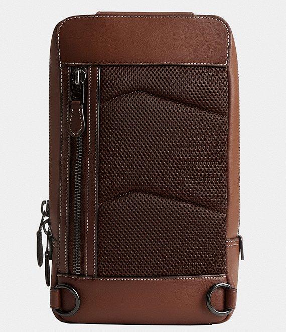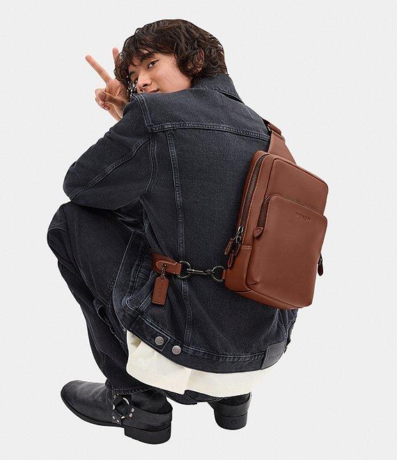 From COACH. this pack features: Glove-tanned leather Interior multifunction pockets Zippered closure Adjustable shoulder strap with 36.5" length for crossbody wear (clip left or right) Dimensions approx. 12.5" (H) x 7" (L) x 2.75" (W) Fabric lining Glove-tanned leather Spot clean One size Imported.
