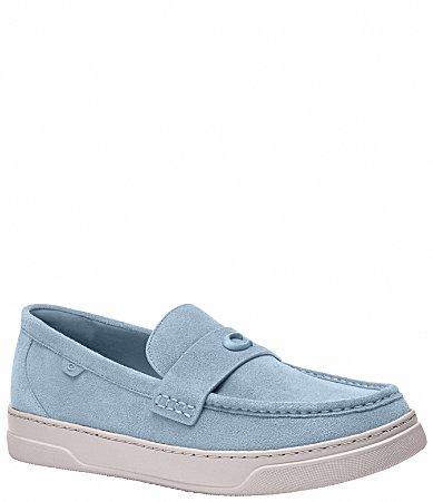 From COACH, the Mens Hybrid Suede Loafers feature:Suede upperDecorative strap with logo hardware at vampSlip-on constructionSynthetic liningEVA outsoleImported.