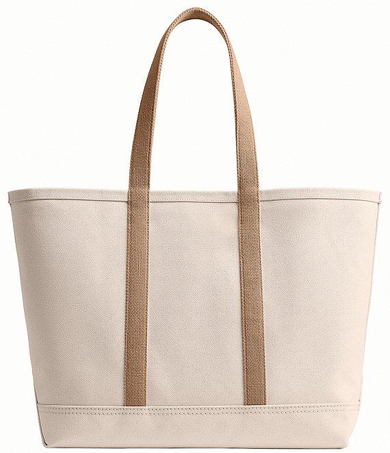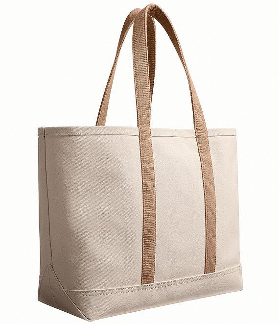 From COACH, this tote bag features: Canvas, smooth leather, and grosgrain Interior snap-closure pocket Handles with 10" drop Fits a 16" laptop Approx. 16 1/4" long x 14 1/4" tall x 7 3/4" wide Canvas/smooth leather/grosgrain; unlined Spot clean Imported.