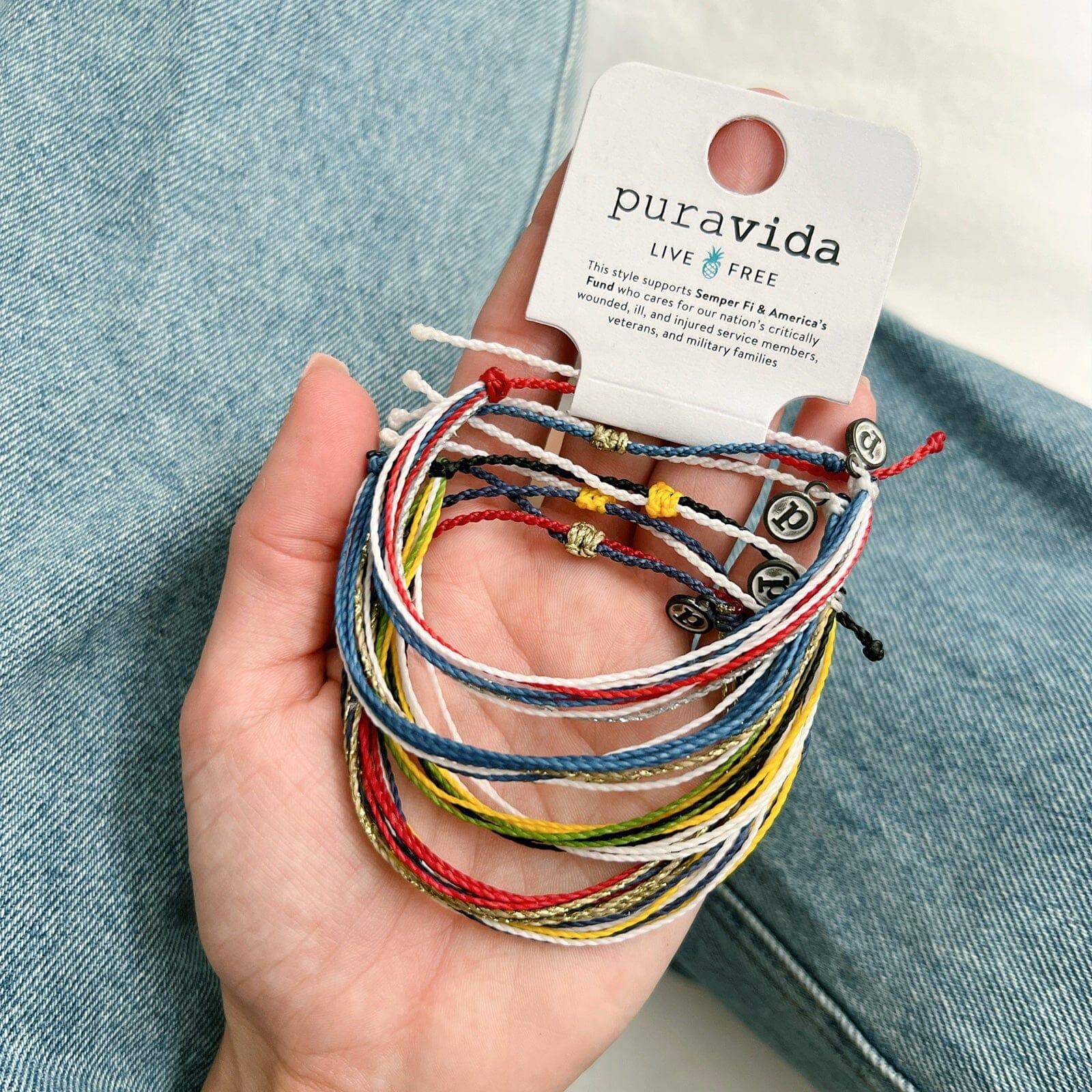 Honor the bravery and sacrifice of our country’s servicemen and women with our Coast Troops Original Bracelet. This patriotic piece comes in string shades of red, white and blue, plus a hint of shimmery silver to really make it stand out. For every bracelet sold, Pura Vida will donate 5% of the purchase price to Semper Fi & America’s Fund. Semper Fi & America’s Fund cares for our Nation’s critically wounded ill, and injured service members, veterans, and military families. Supporting all branches of the U.S. Armed Forces, they provide one-on-one case management, connection, and lifetime support. Today. Tomorrow. Together. *If you'd like to learn more about our Charity donation percentages, click here. WaterproofGo surf, snowboard, or even take a shower with them on. Easily AdjustableOne size fits all, easy to slip on and off.