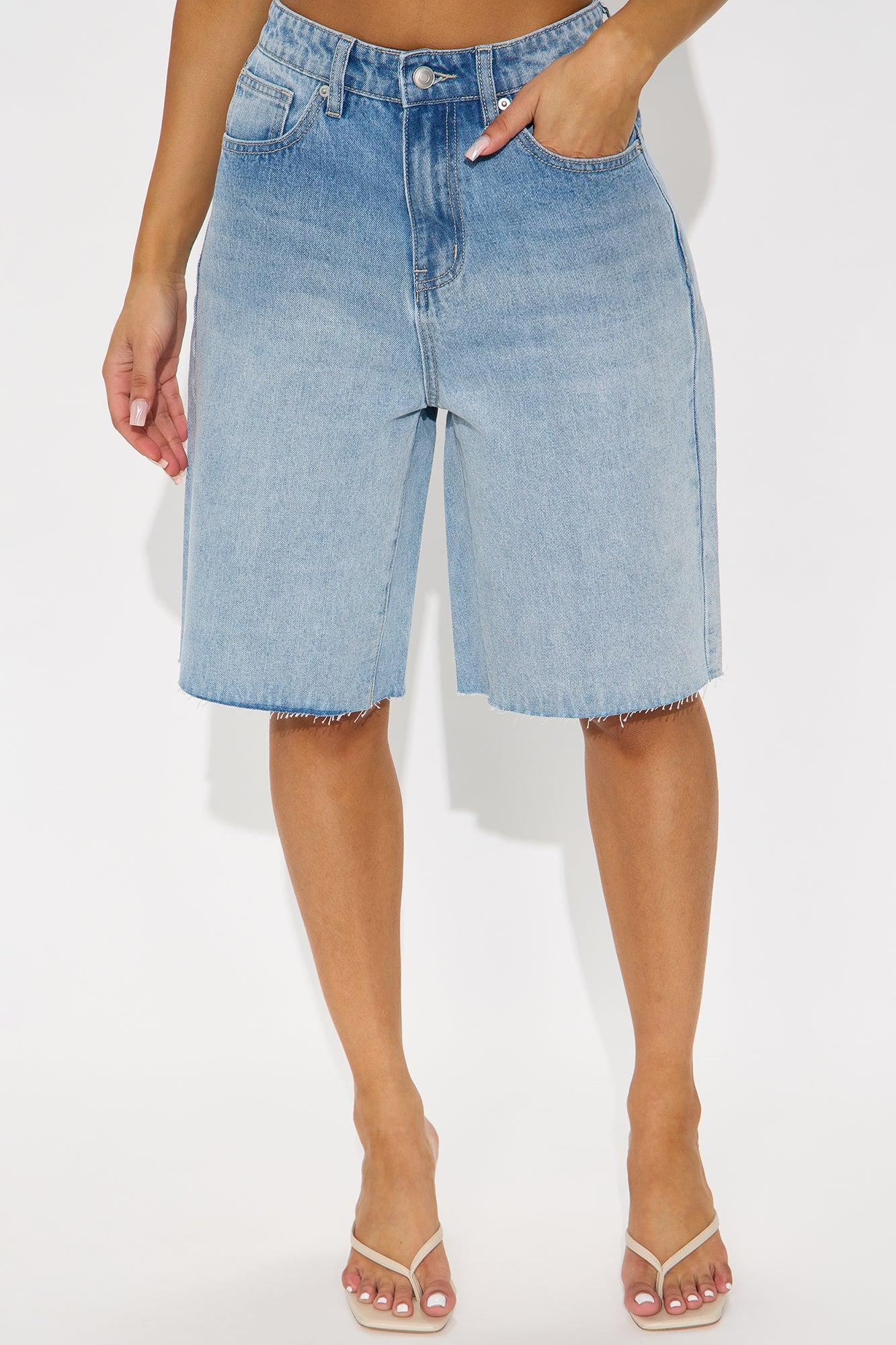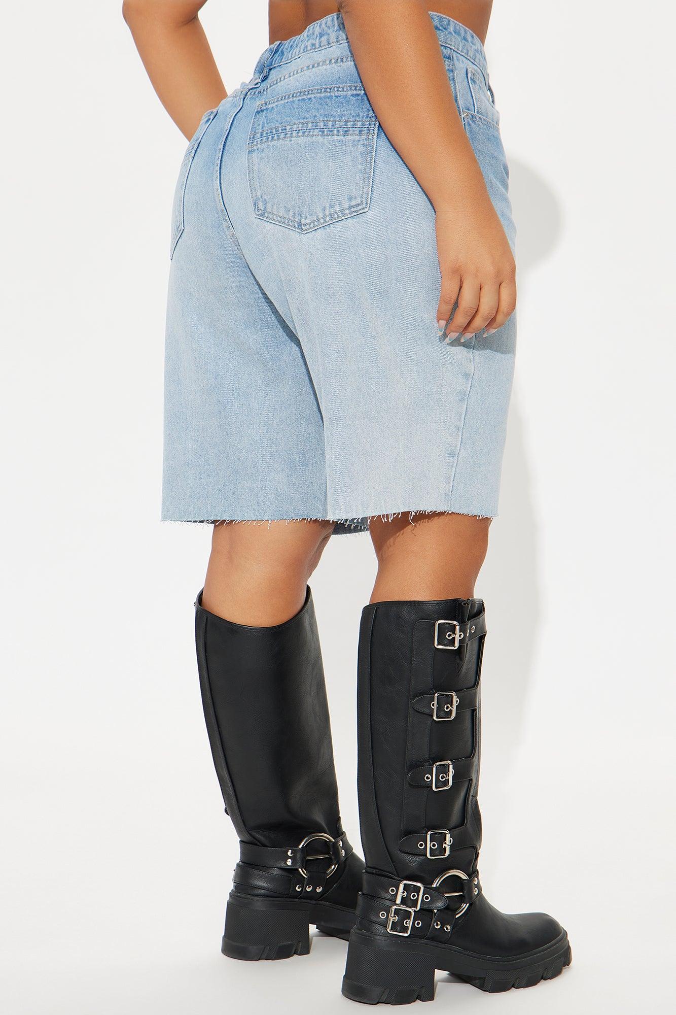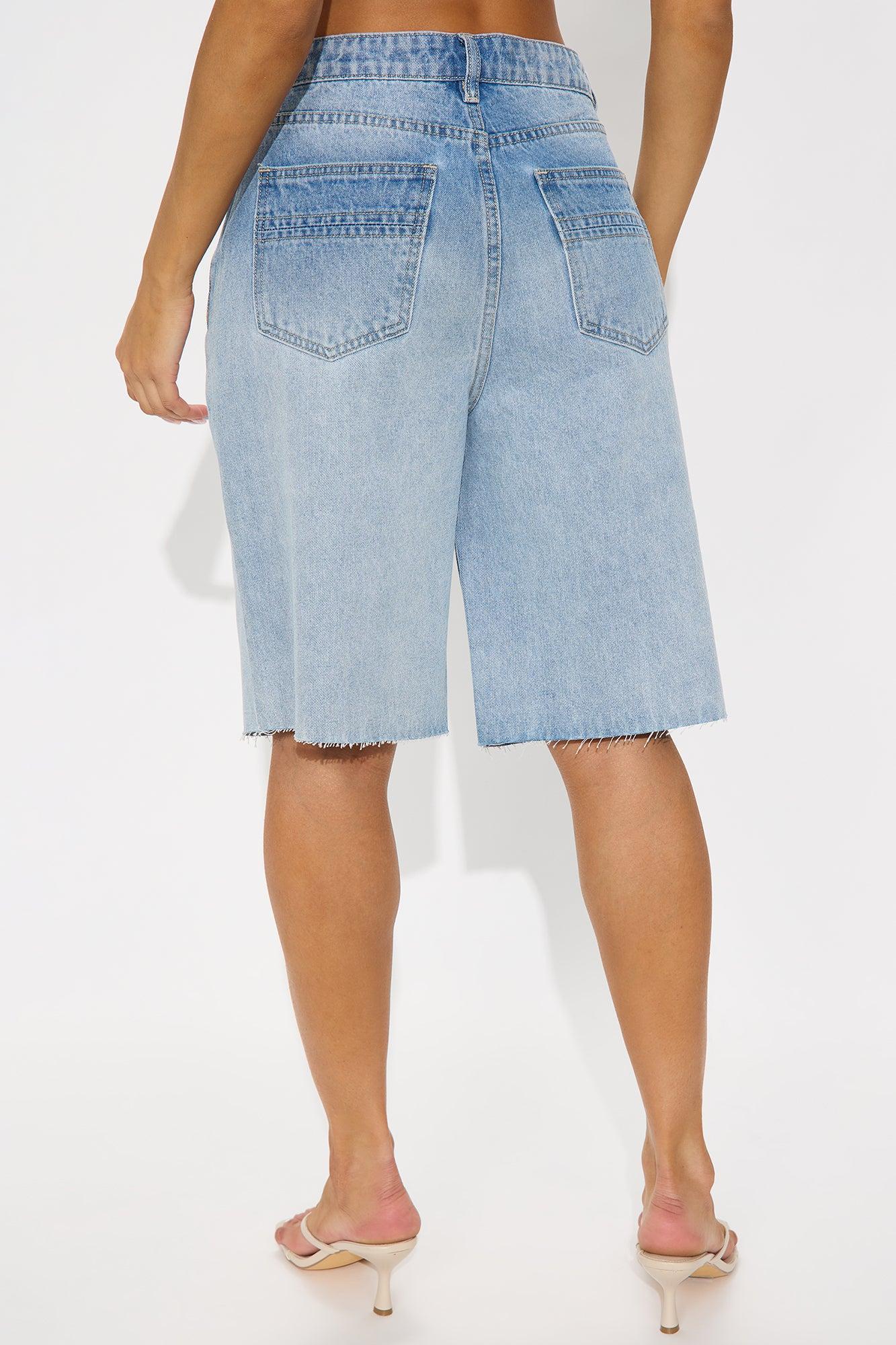 Available In Light Wash. Denim Short 5 Pocket Raw Hem 12" Rise 10.5" Inseam Non Stretch Disclaimer Due To The Specialized Wash Process, Each Garment Is Unique. 100% Cotton Imported California Proposition 65WARNING: Cancer and Reproductive Harm - www.P65Warnings.ca.gov.