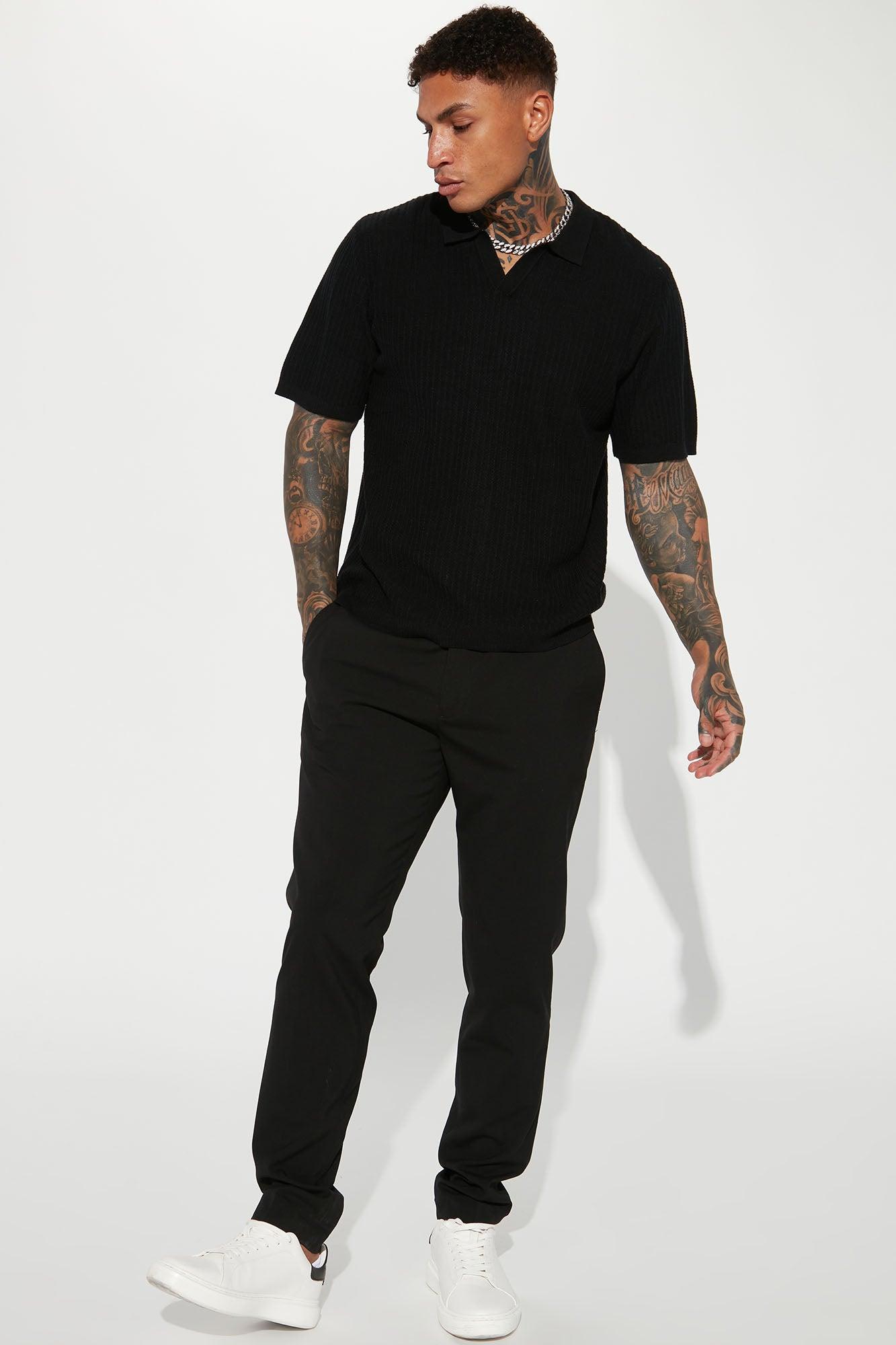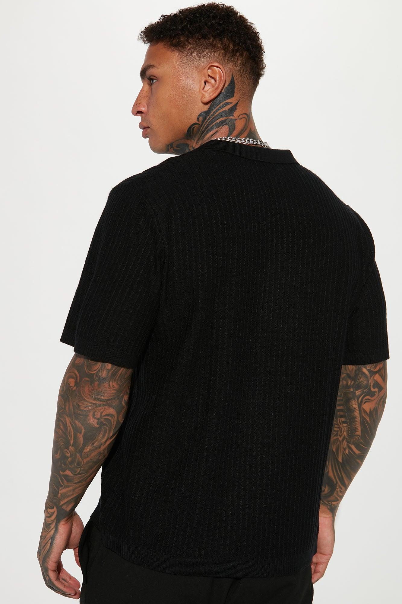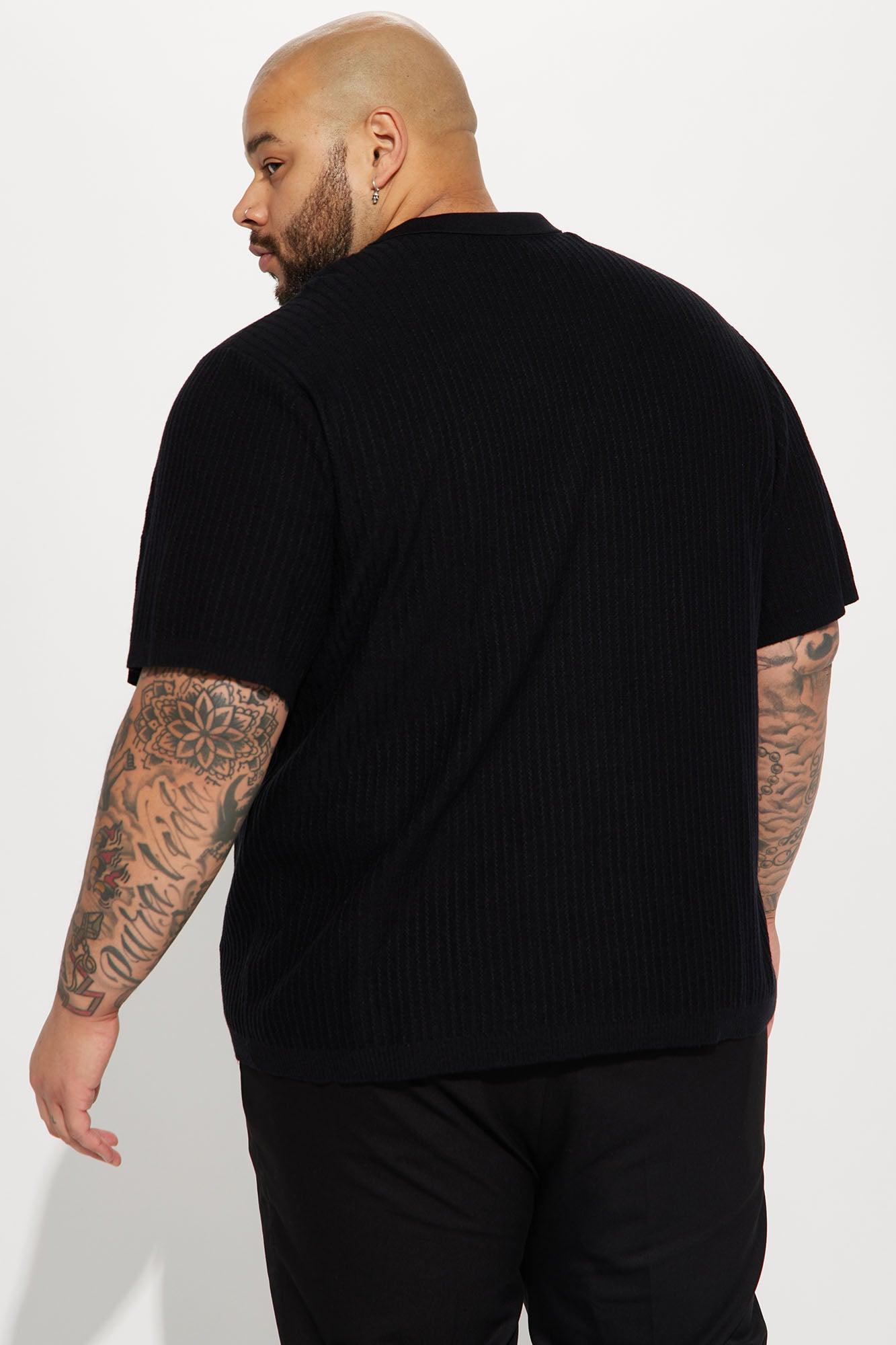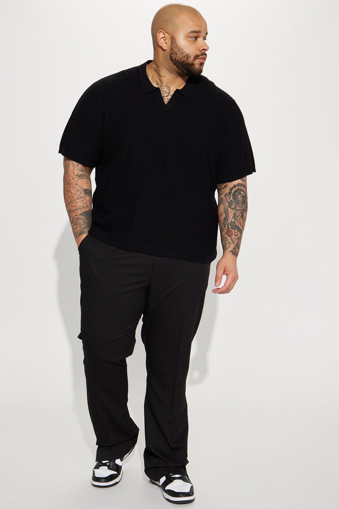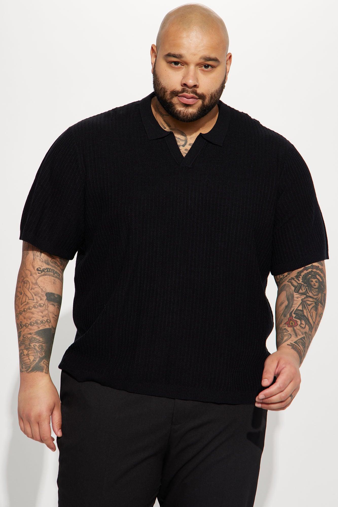 Model Height: 6'2 - Wearing Large Big & Tall: Height 6'3 - Wearing XXXL Available In Black And Sand. Fold Down Collar Two Button Closure Short Sleeve 50% Viscose 28% Polyester 22% Nylon Imported California Proposition 65WARNING: Cancer and Reproductive Harm - www.P65Warnings.ca.gov.
