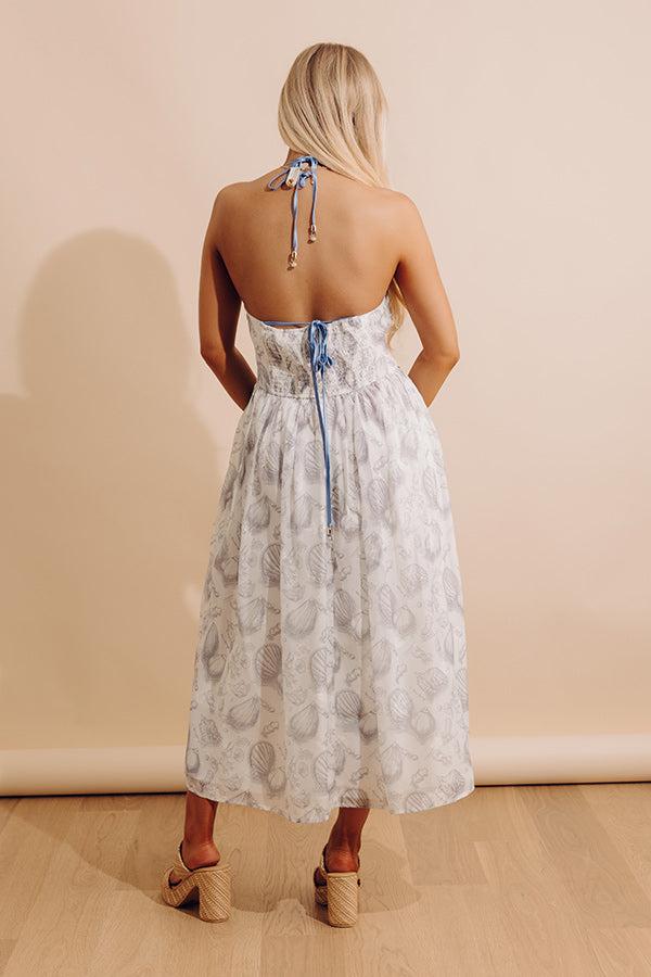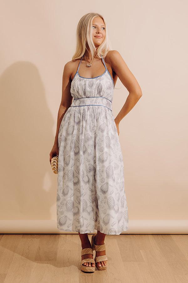 - Embrace laid-back coastal style in this adorable midi. The seashell print adds a playful touch, while the delicate details bring just the right amount of charm for a shoreline stroll.