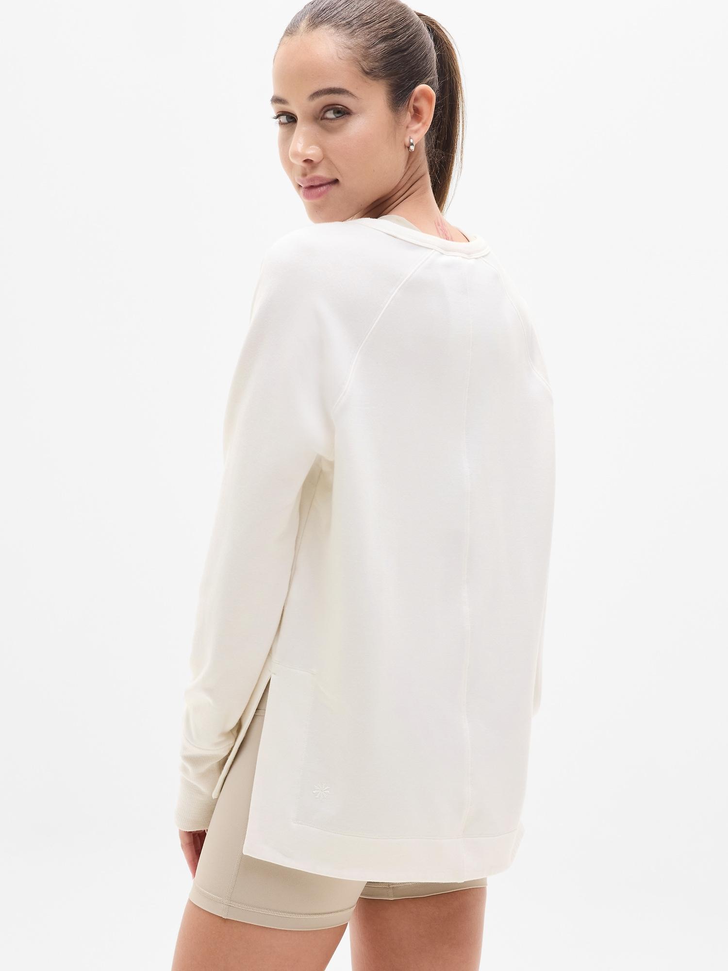 Your favorite CYA sweatshirt, now with revamped finishes, stay-closed thumbholes, and a crew neckline FOR: Lounge and restoration FEEL: Super-soft Brushed Nirvana is extra cozy FAVE: Thumbholes hold sleeves in place and keep you warm Slits on side for easier mobility #659287
