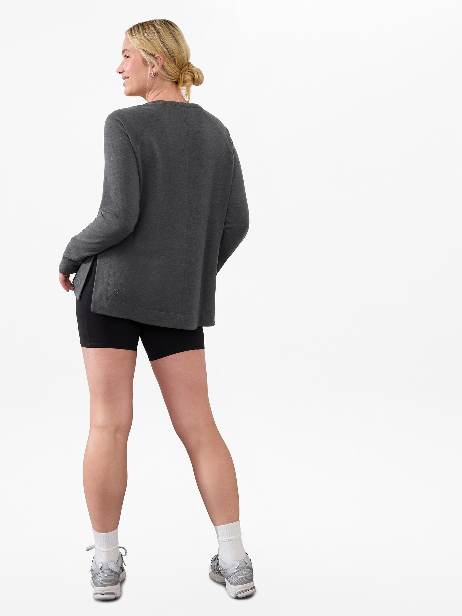 Your favorite CYA sweatshirt, now with revamped finishes, stay-closed thumbholes, and a crew neckline FOR: Lounge and restoration FEEL: Super-soft Brushed Nirvana is extra cozy FAVE: Thumbholes hold sleeves in place and keep you warm Slits on side for easier mobility #659287