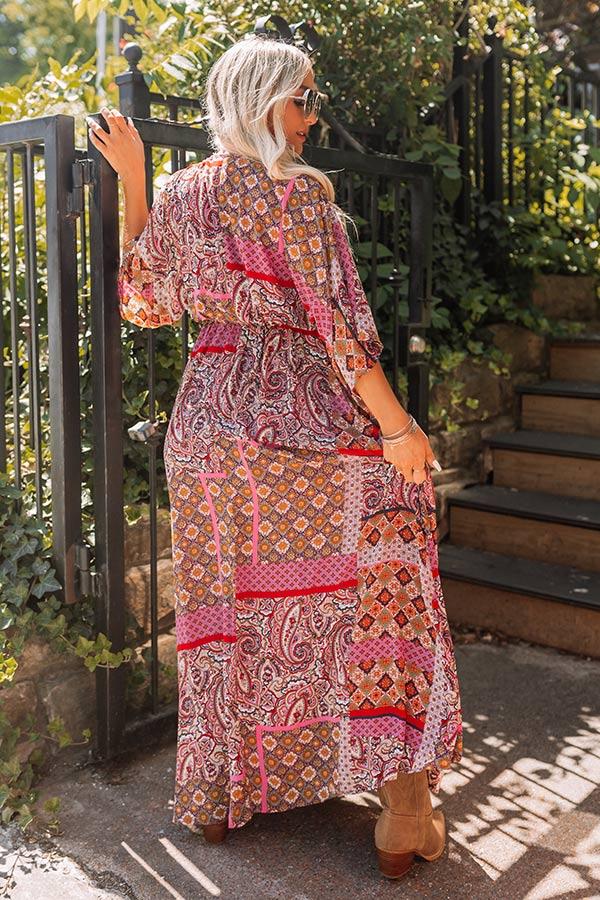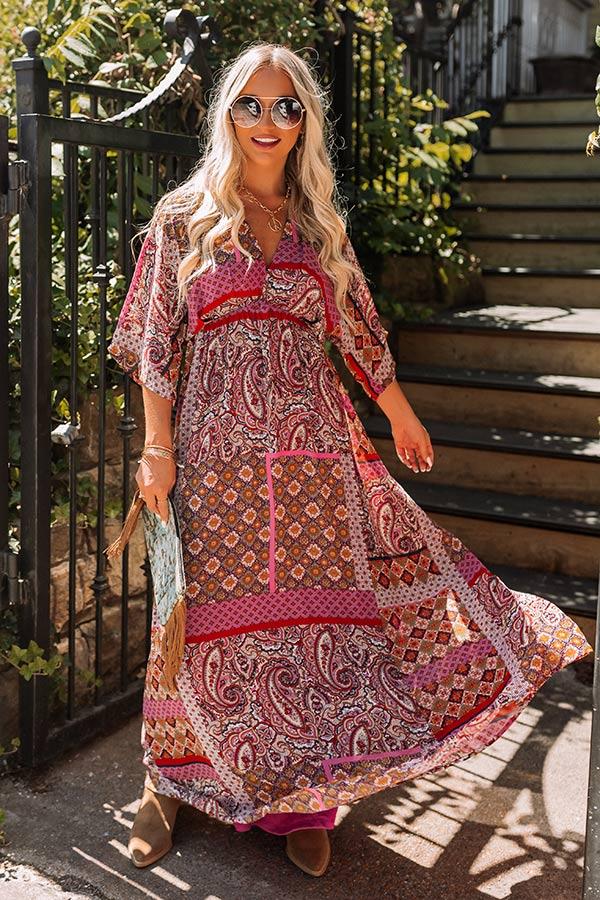 You will look like a boho queen in our beautiful orchid colored 'Coasting Through Amalfi' maxi featuring lightweight material patterned with an intricate a colorful paisley print, a v-cut neckline, loose half sleeves, and a relaxed silhouette that cascades into a straight ankle-length hemline! Measurements S : Bust 32", Hip 32", Length 57.5", Sleeve Length 18", Waist 26". M : Bust 34", Hip 34", Length 58", Sleeve Length 18.5", Waist 28". L : Bust 36", Hip 36", Length 58", Sleeve Length 19", Waist 30".
