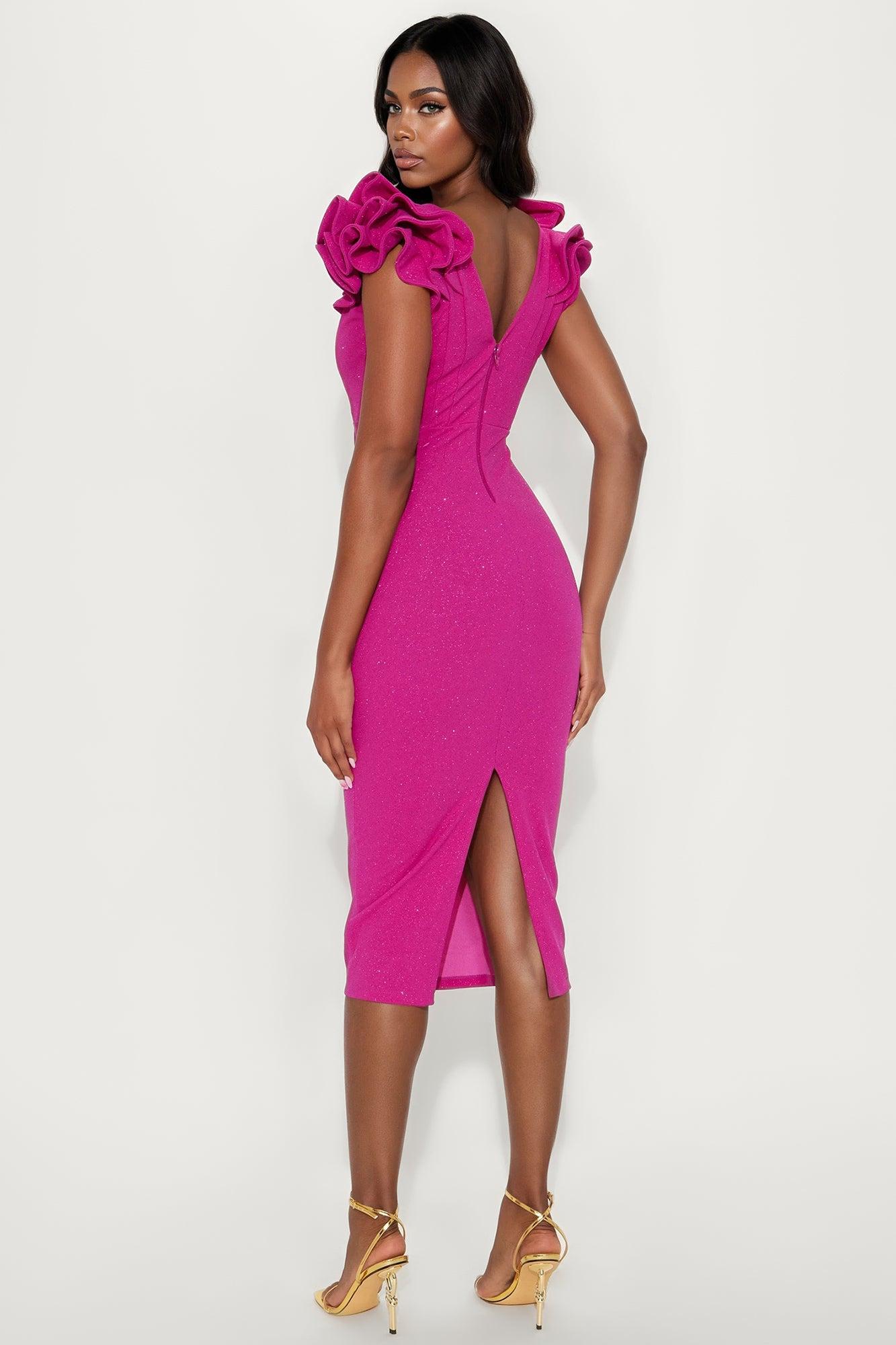 Cocktail Hour Glitter Midi Dress - Violet Female