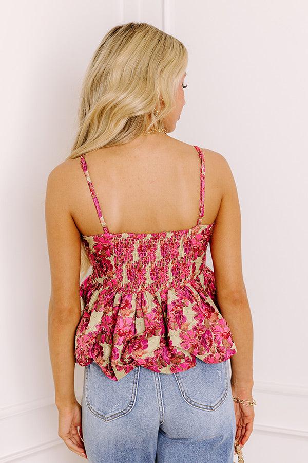 - Make a sweet style statement in this floral jacquard top! A peplum silhouette and bubble hem add playful dimension, while the jacquard material gives it a luxe touch. It's your perfect choice for brunch, date night, and everything in between.