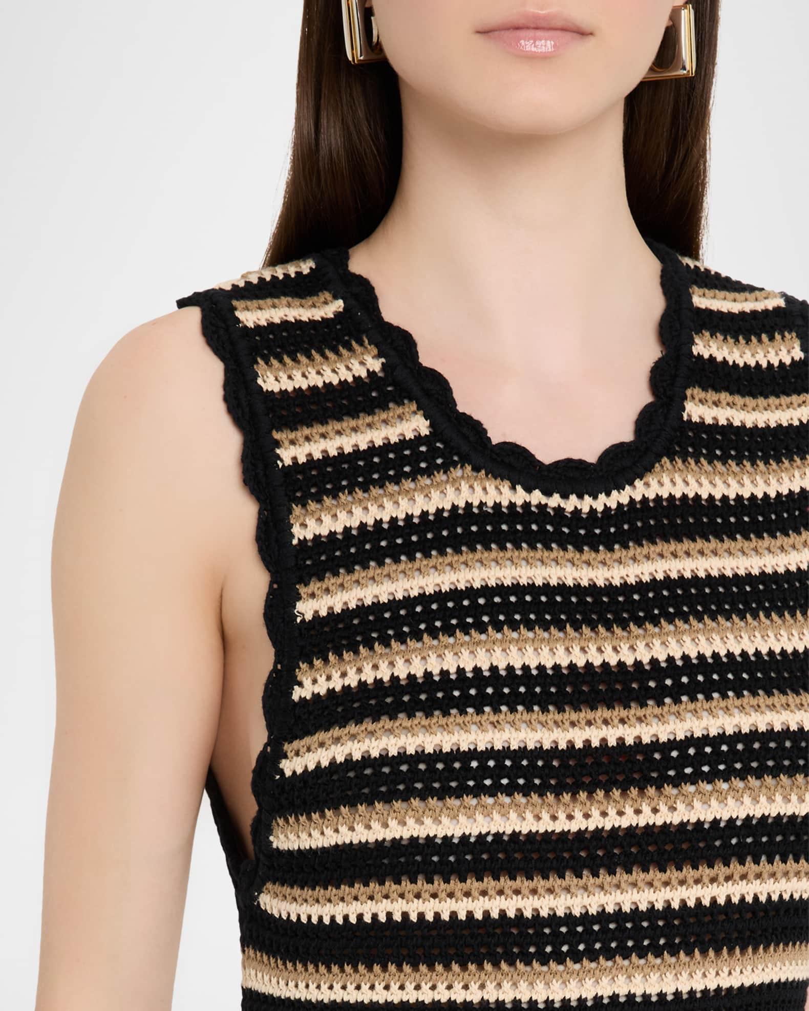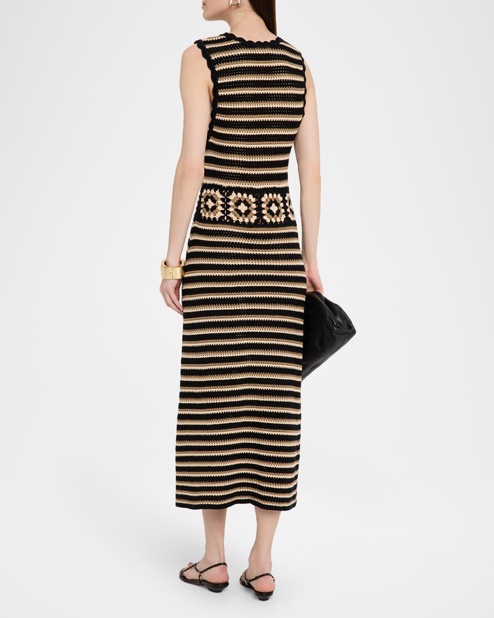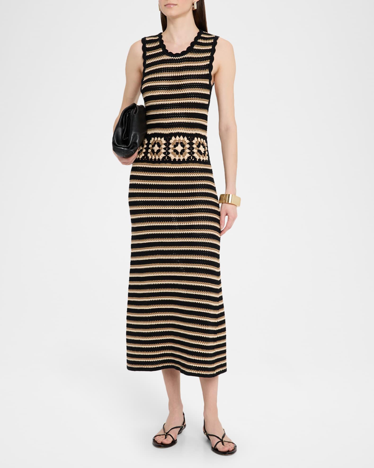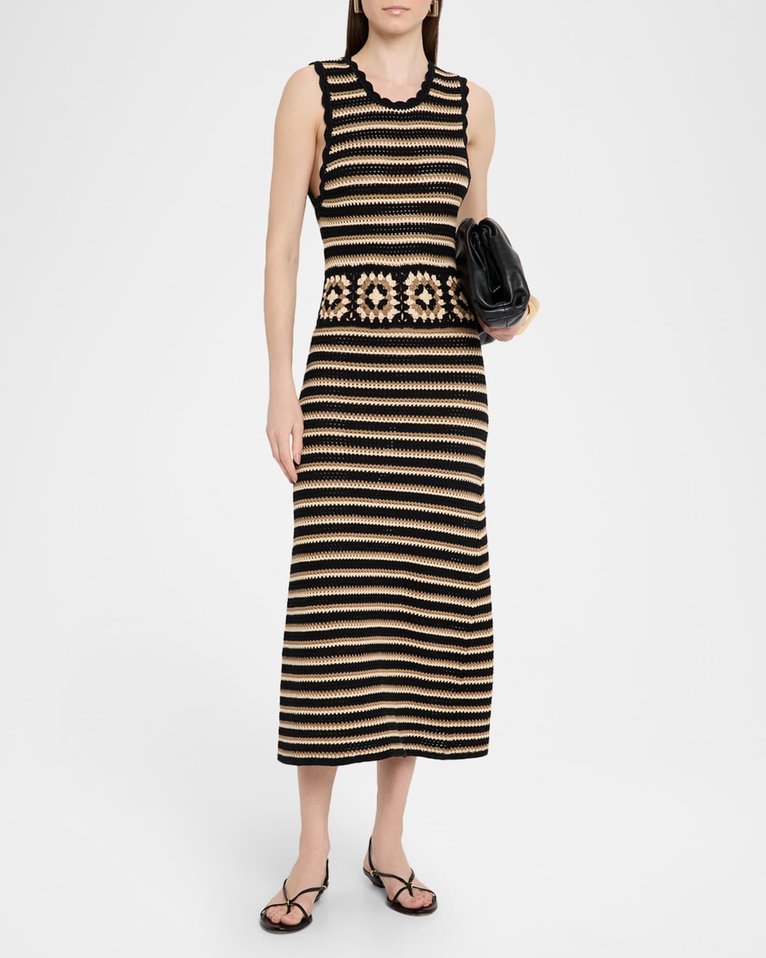 Rails "Coco" striped crochet-knit complete with floral detailing at the waist and scalloped trim Approx. 45"L from shoulder to hem Scoop neckline Sleeveless Body-skimming fit A-line skirt Hem falls below the knee Slipover style Cotton Unlined Hand wash or dry clean, do not bleach, cool iron if needed, lay flat to dry Imported